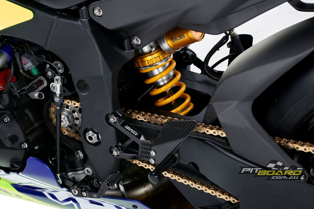 A carbon-fibre fairing kit and full carbon rear sub-frame have been produced, with the tank capacity increased to 22L, all designed with weight saving in mind. The Brembo brakes have been developed for incredible stopping power, while the high performance ECU REX 140 Marelli produces world class power delivery. The full list of the special parts coming from WorldSBK Championship winning experience is listed below, and are additional to the GYTR parts such as the Ohlins suspension and GYTR front and rear sprockets.