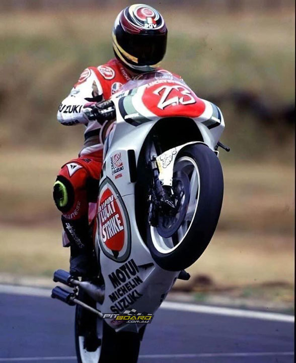 I could have gone either way with life, but I focussed on bikes to get me through and with a bit of a push from my bosses Ian and Bill Furlong and work mates and friends, and a previous push from my ex-boss Len Willing, I started planning to begin racing from late 1994. The late nights building my RGV250, the Gobert posters (then on an RC45) as motivation… I could go on.