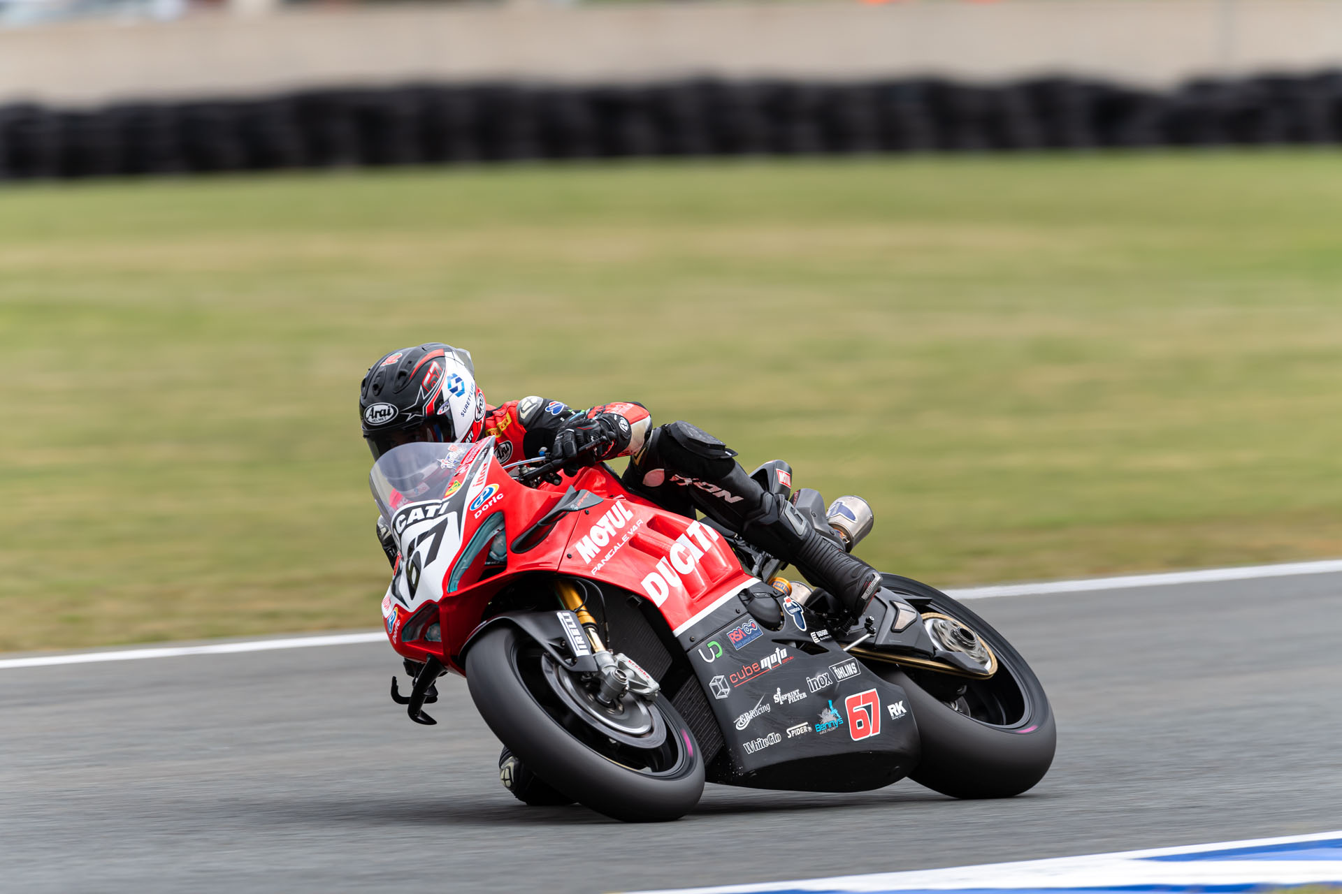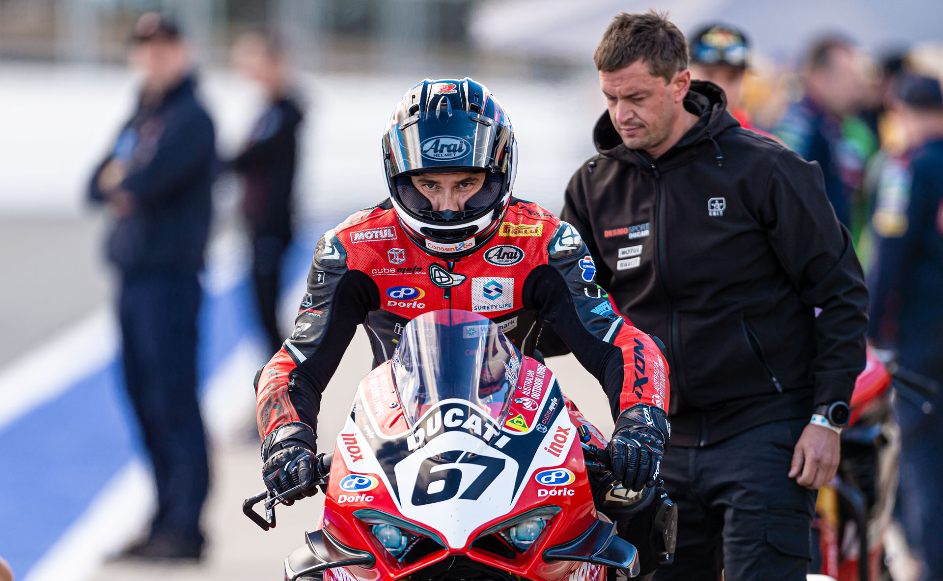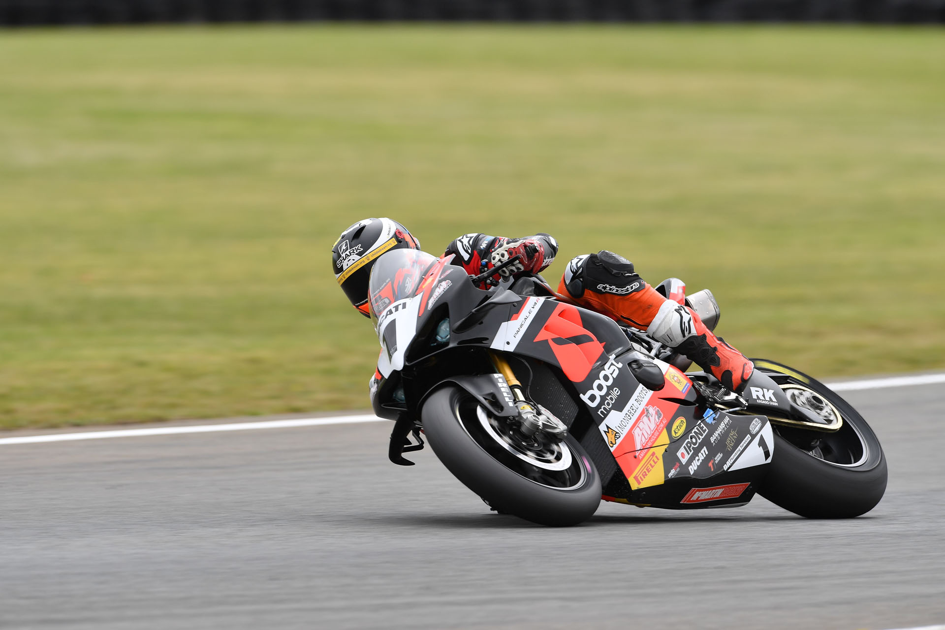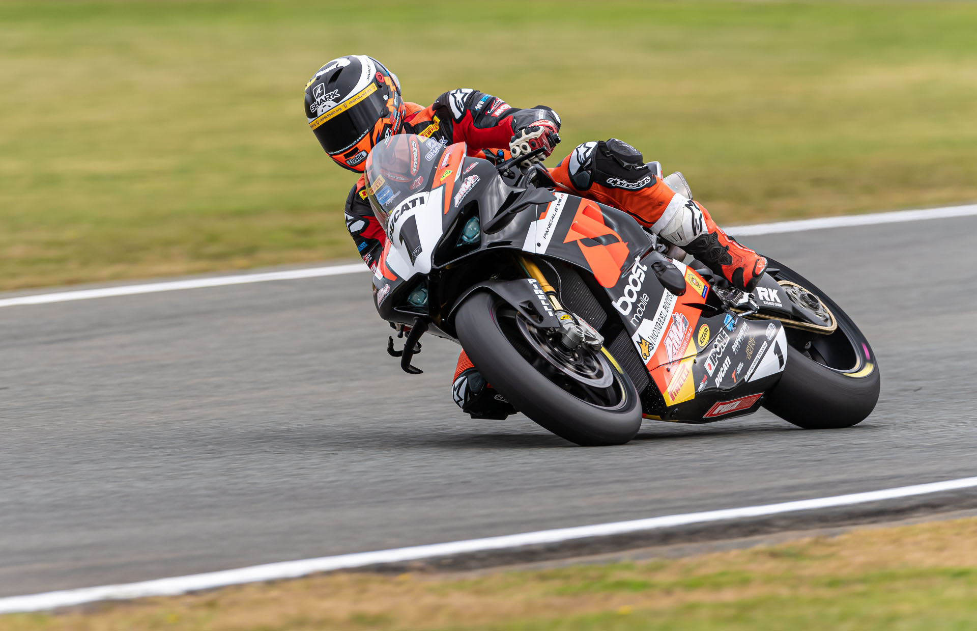 It was a very satisfied Mike Jones (Yamaha Racing Team) who parked his bike not long into the timed practice session as he went to P1 with a time just a few thousands of a second off Wayne Maxwell’s (Boost Mobile with K-tech) fastest time from Friday. Not only was he at the top of the table, but he also now knew he had the pace to run with the Ducati Panigale.