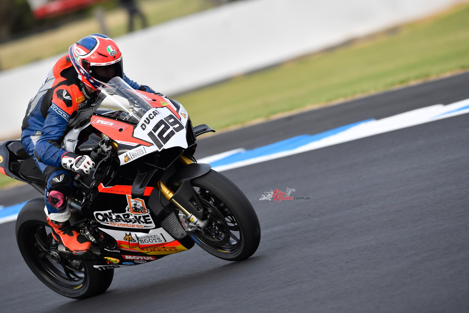 After edging out Herfoss, Jones and Halliday in qualifying with a new Australian Superbike best lap of 1m30.379s, there was an air of inevitability when Waters blitzed the race one start and Herfoss struggled to get off the line. Waters immediately set about putting the sword to the opposition – but it was early disaster for Ted Collins (BMW) whose race only lasted two corners before he was cannoned into by another rider and crashed out.