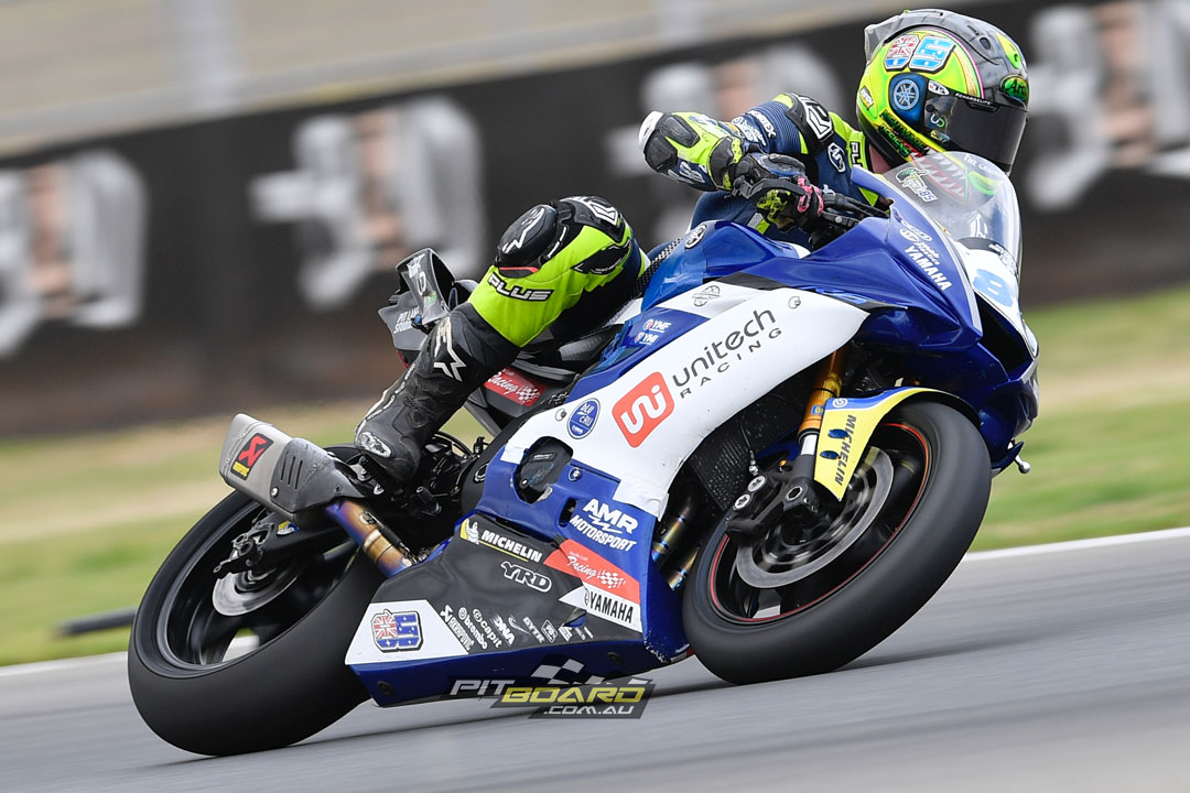 Coming into the round Dunker (GTR Moto Stars Yamaha YZF-R6) was in a title fight with South Australians Olly Simpson (Simpson Crash YZF-R6) and Ty Lynch (AMR Sports YZF-R6). Adding to the spectacle was the return of some fast Aussies from overseas, led by 17-year-old Harrison Voight.