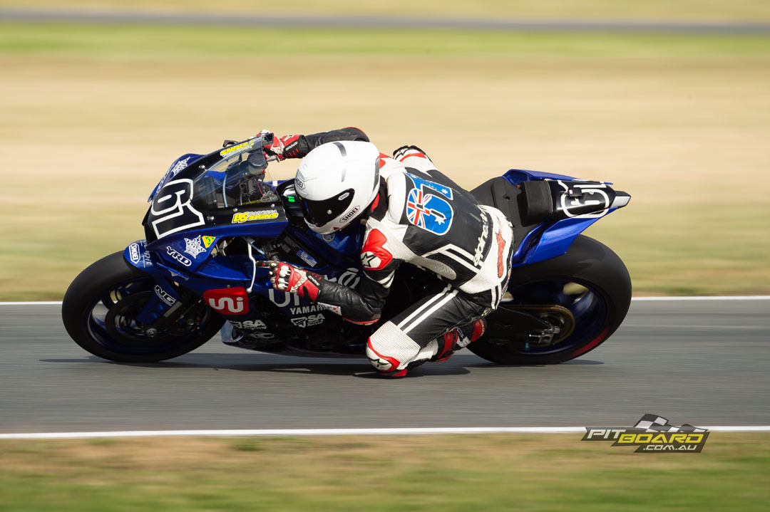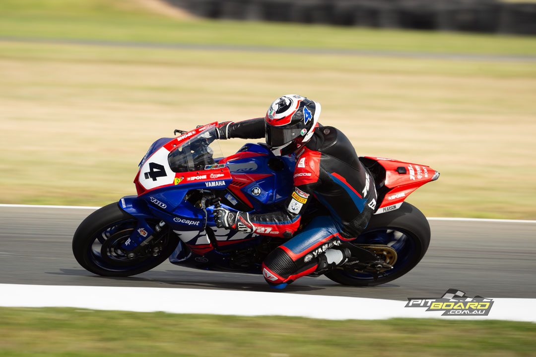 Ordinarily, the morning warm-up would pass with barely a mention. But Wayne Maxwell had noted at the Saturday evening press conference that the Boost Mobile with K tech team would be returning to previous settings, so interest was piqued. The #1 plate was up by a lot on the Friday and just conceded ground in every session from then on. In the warmup it was that Mike Jones (Yamaha Racing Team) from Maxwell with Cru Halliday third.