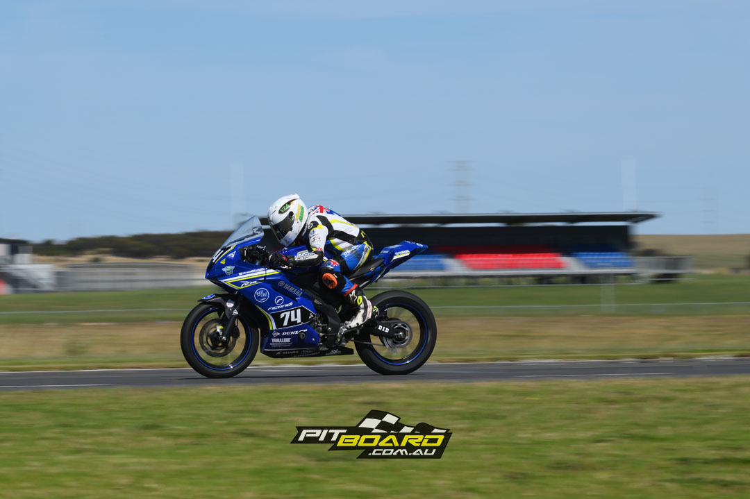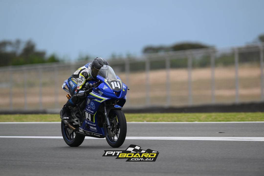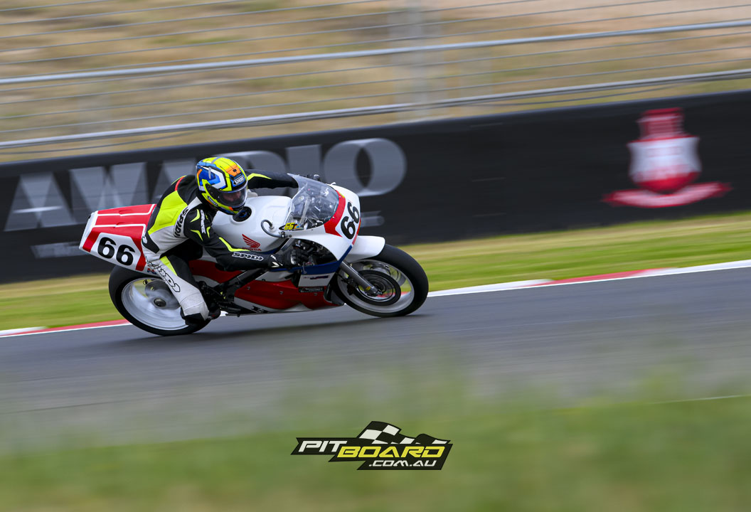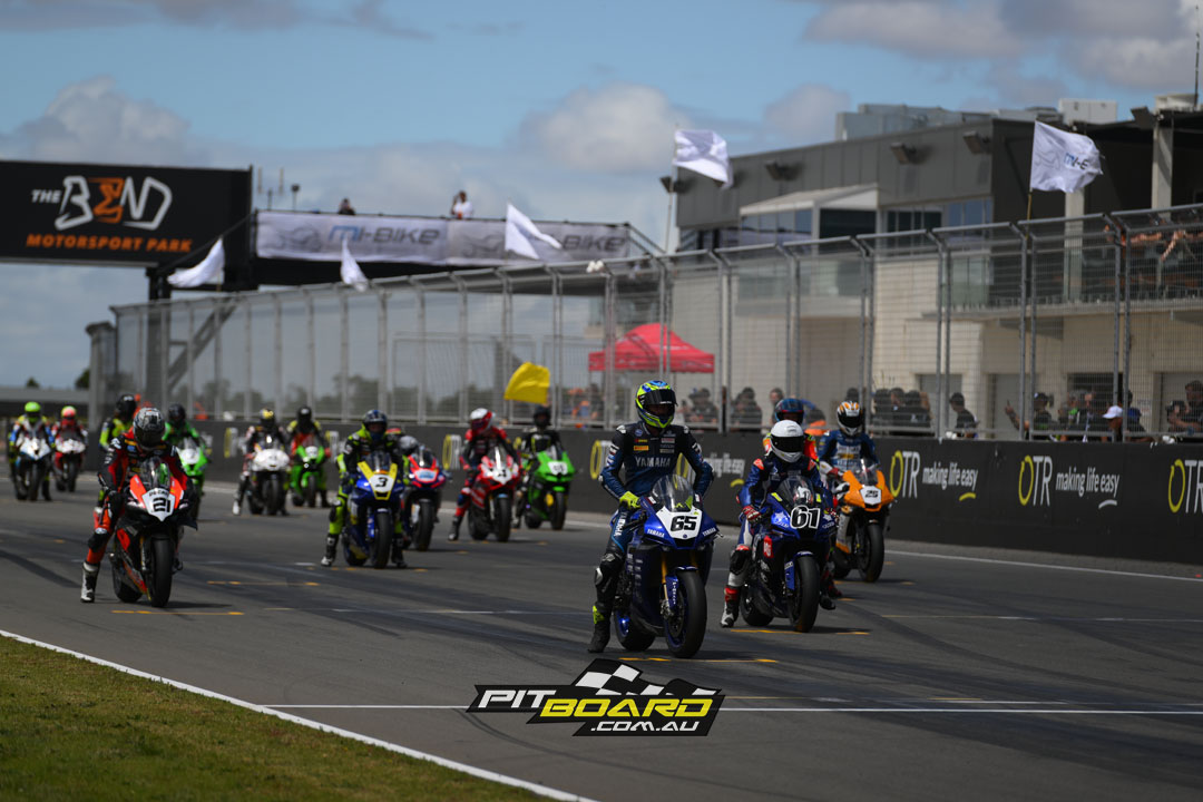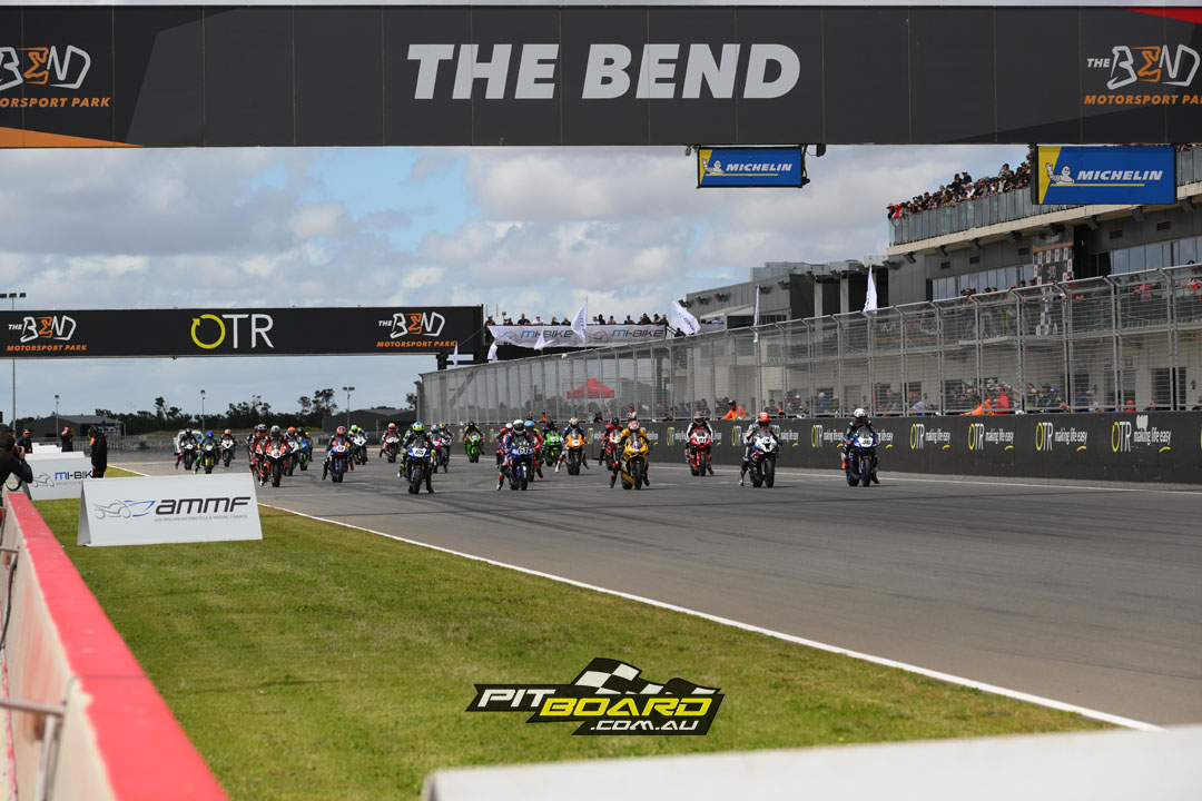 Earlier in the morning, Sissis had bemoaned the number of times he had been P2 during practice sessions at The Bend over the years and it had happened again. Jack Miller was an outstanding fourth with Wayne Maxwell fifth. Championship leader Mike Jones was down in eighth, but ahead of second-in-the-championship Bryan Staring who was 12th and Jones was close enough to third placed Wayne Maxwell to be justifiably unconcerned.