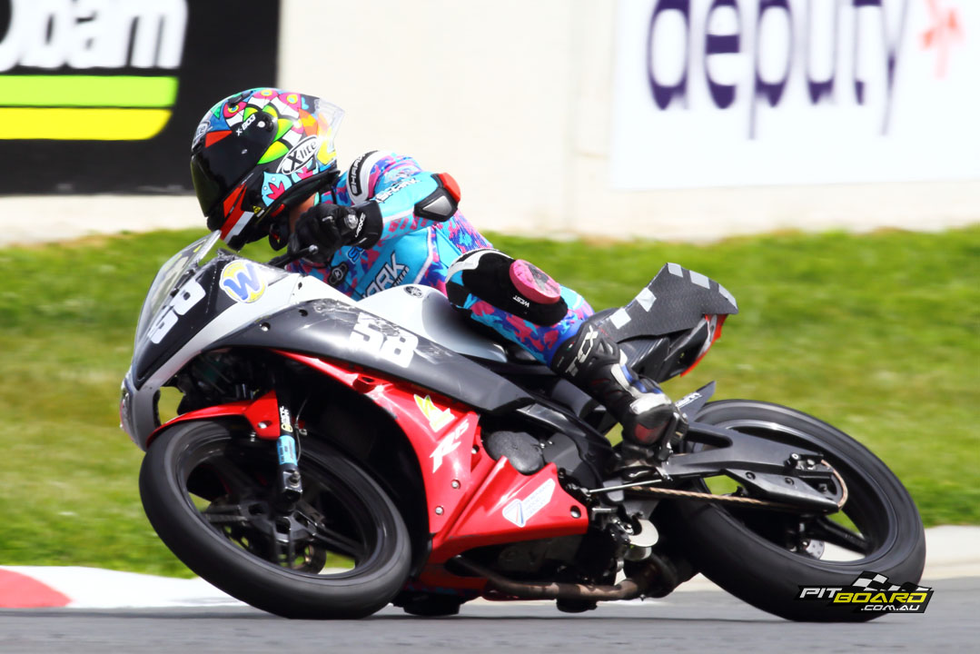 I remember the Honda CB125 being a ball to ride, essentially flat pelt around 90 per cent of Wakefield and SMSP, tucking my 184cm frame the best I could underneath the fairing. The best part of it all, even at a complete loss of bike in an accident, you’re only out like $1000-$2000!