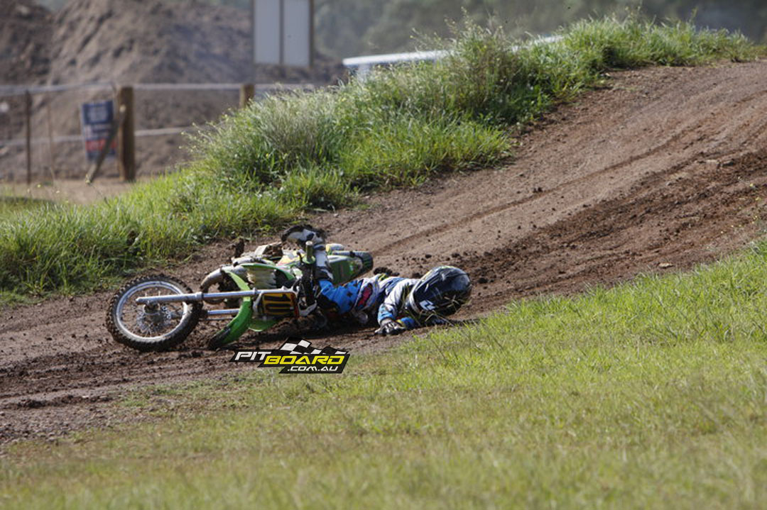 Coming back around the next lap and poor John is picking his bike up off turn one! Lucky he’s such a nice guy, there was no kicking and screaming just laughs and smiles, he had tried to get me back mid corner and hit the ripple-strip.