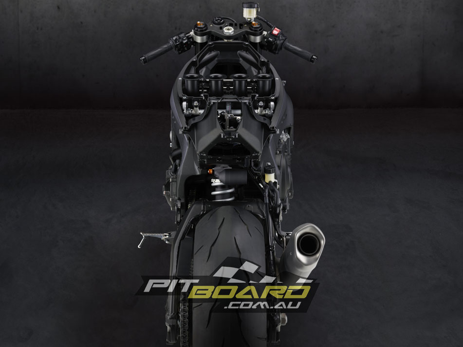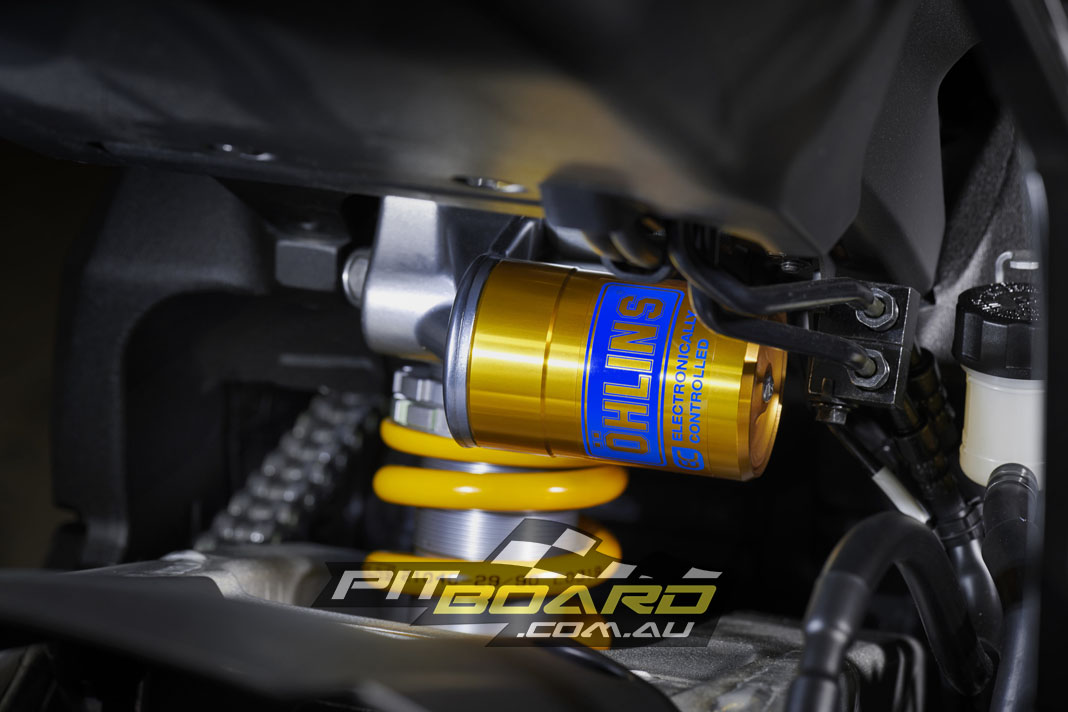 The only changes to the engine seem to me on paper to be for environmental reasons – Cat converters (four of them) moved closer towards the exhaust ports/headers so they get hotter quicker and burn more poison earlier, a more restrictive muffler, injectors moved and with fewer holes, revised camshaft profiles and rocker arm/valve acceleration ratio for improved efficiency and full cable-less RbW to give the software engineers complete control over how much juice is burned versus how much juice the rider wants to burn. So nothing too major engine-wise but still a cracker of a motor…