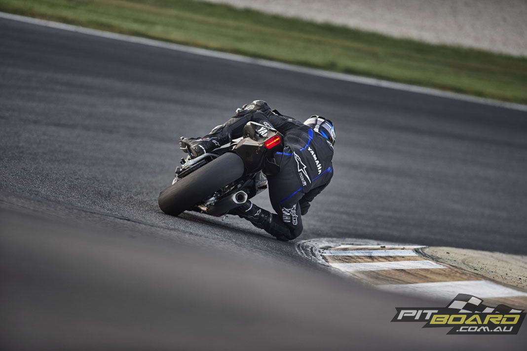 Rolling out of pit lane on the all-new YZF-R1, those two areas are front of mind. I am not 100 per cent sure of the exact changes to the fuel tank/seat/bar area, however, the 2020 model for me proves to be easier to hang on to and lock-on to than the outgoing one. I can hardly see any difference with the fuel tank sides, so can’t completely explain the improvement, but even braking for T2 for the first time, the bike feels different to sit on and hang off…