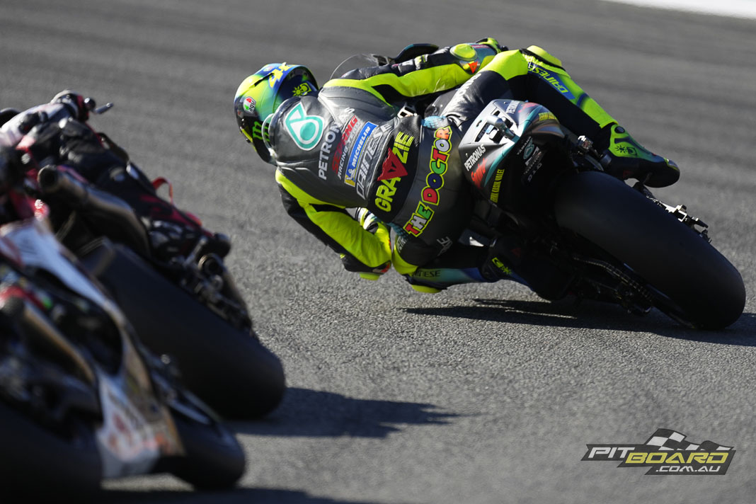 Bagnaia was swarming all over the back of the race-leading rookie though and with 12 laps to go, at Turn 14, Pecco pounced. Now, with some clear air, what could the Italian do? The fastest lap, a 1:31.042, came next and the hammer was well and truly down. His mentor Rossi was still 10th with 11 laps to go, but VR46 Academy’s first World Champion and fellow Yamaha star Franco Morbidelli (Monster Energy Yamaha MotoGP) was behind him…