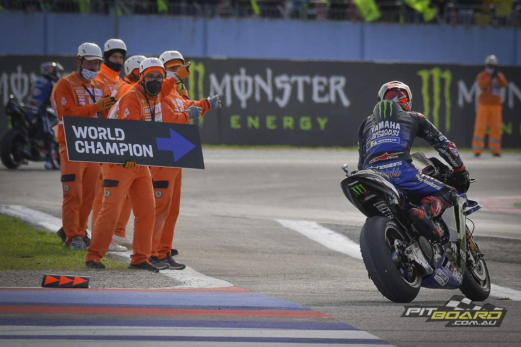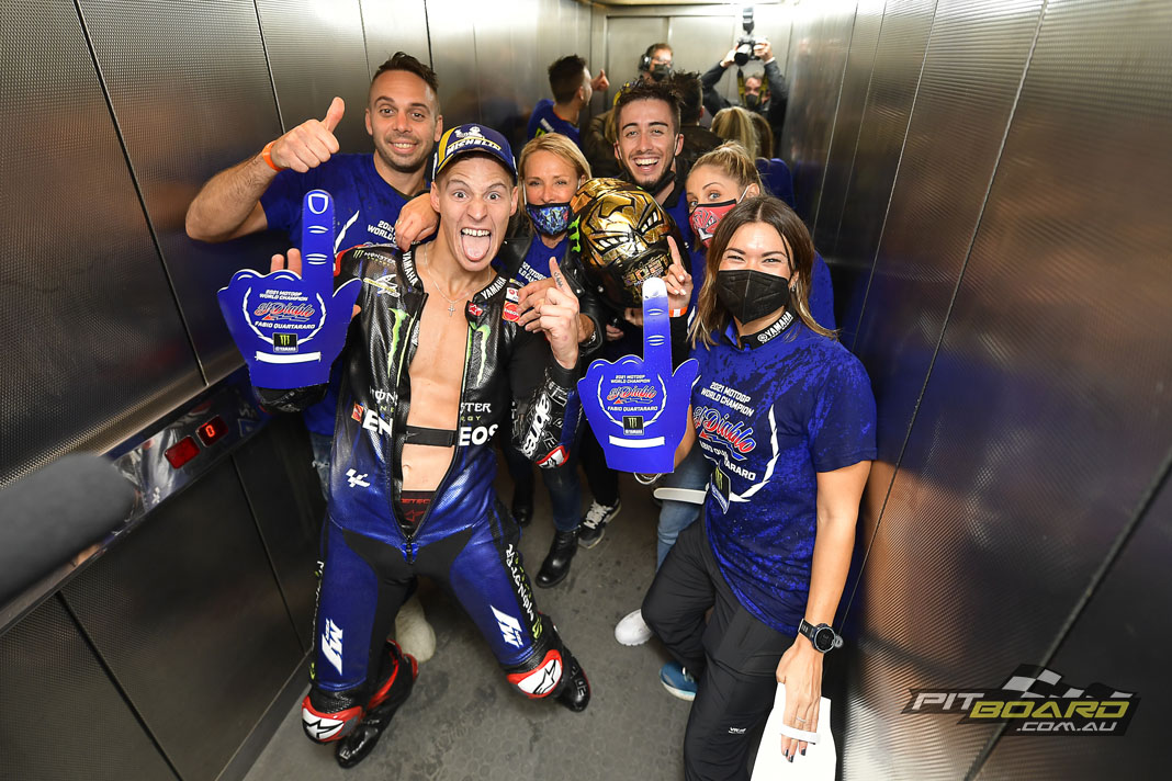 Fabio Quartararo is the 2021 FIM MotoGP™ World Champion! After a dramatic decider at the Gran Premio Nolan del Made in Italy e dell’Emilia Romagna, the Monster Energy Yamaha MotoGP rider sliced from 15th on the grid to fourth as sole rival for the crown, Francesco Bagnaia, crashed out from the lead.
