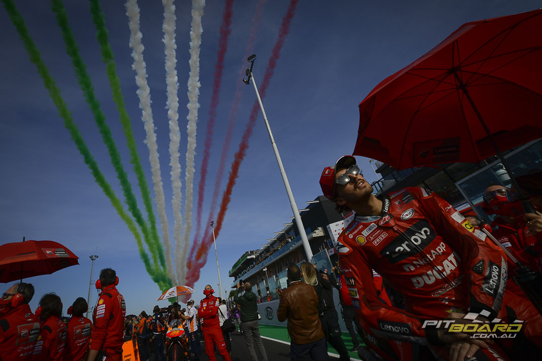 “With a 52-point advantage, starting 15th and seeing Bagnaia on pole wasn’t ideal, but El Diablo kept calm and carried on.”