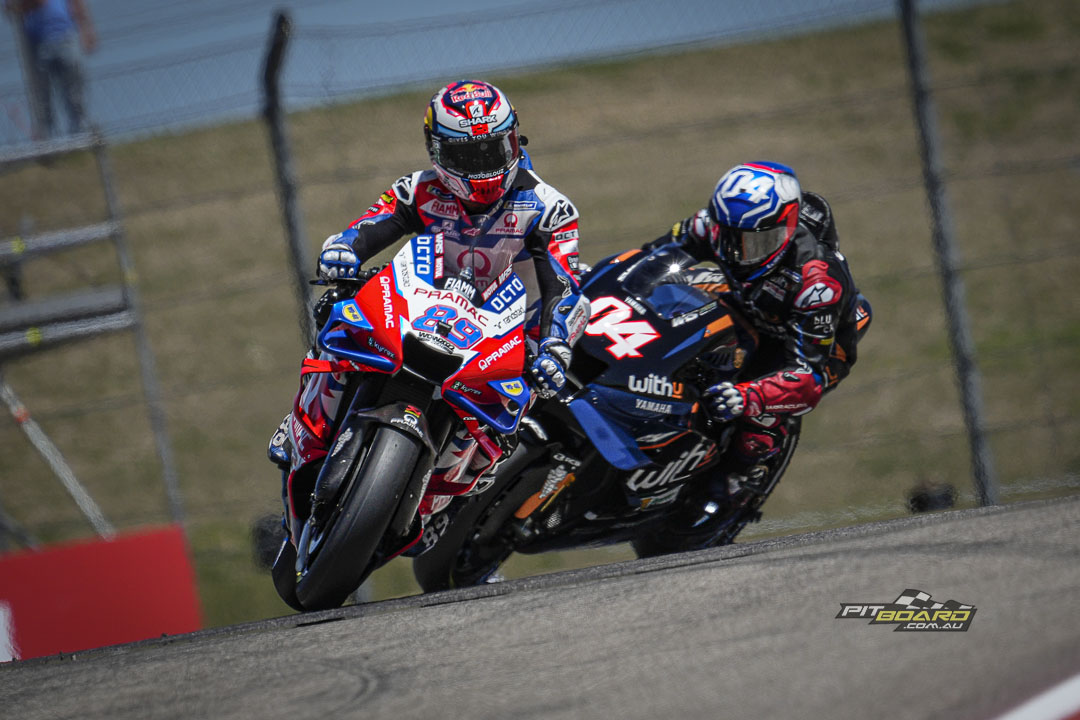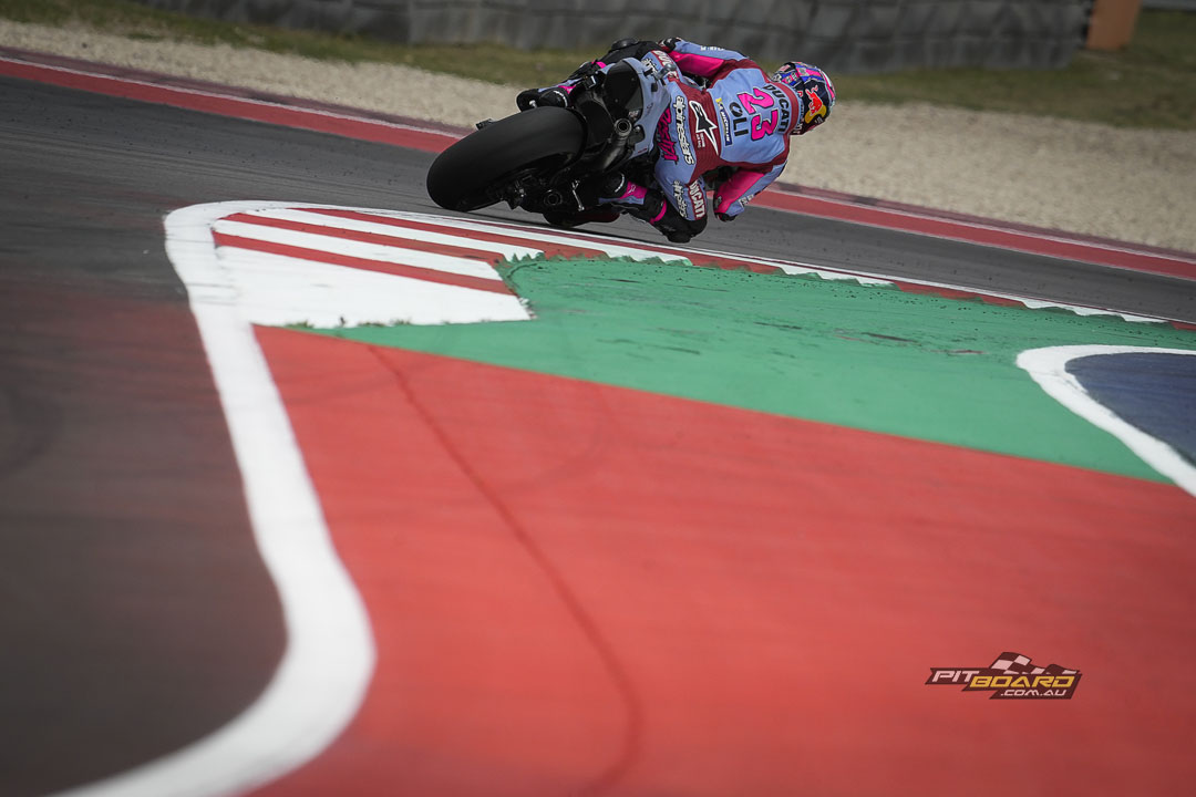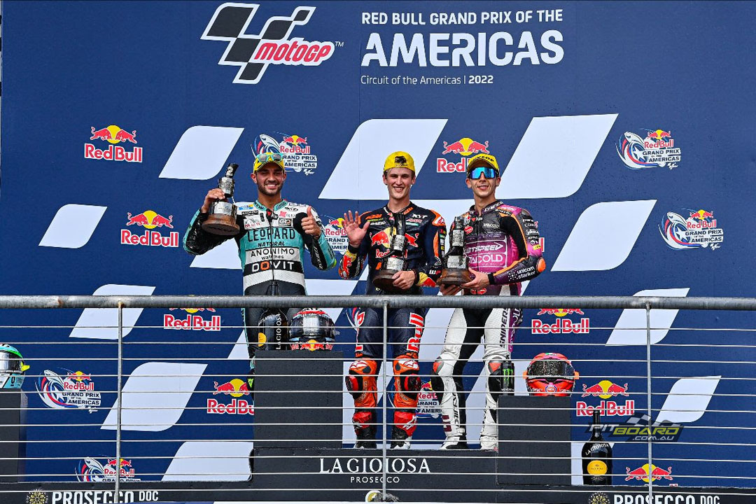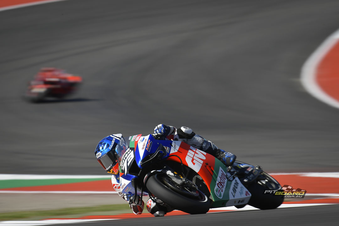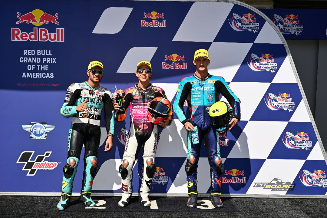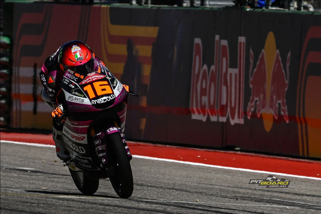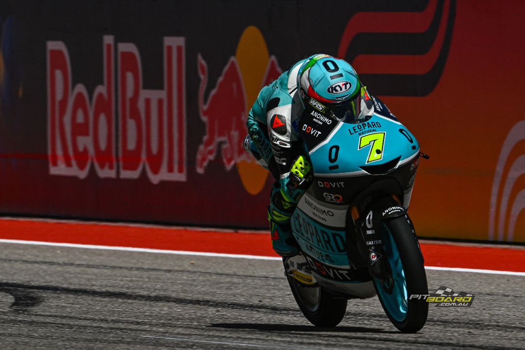 Dennis Foggia (Leopard Racing) flexed some speed on Day 1 at the Red Bull Grand Prix of Americas, pulling clear by more than three tenths ahead of compatriot Andrea Migno (Rivacold Snipers Team).