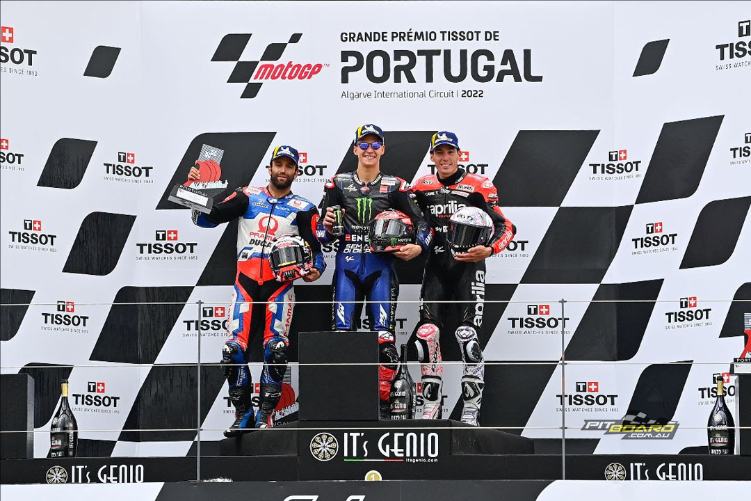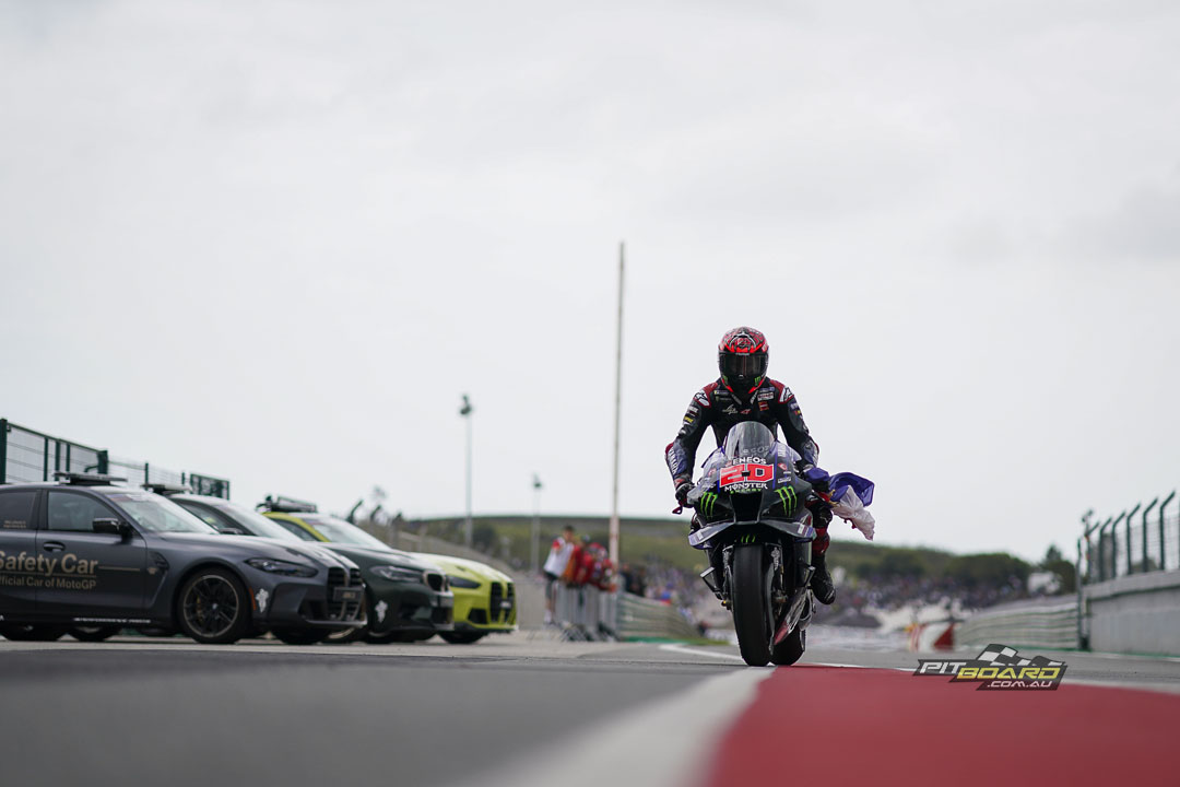 How’s that for a victory? Monster Energy Yamaha MotoGP’s Fabio Quartararo got the hammer down to dominate the Grande Premio Tissot de Portugal and taking his first win of the season, nearly five seconds clear by the flag, comfortably cruising over the line.