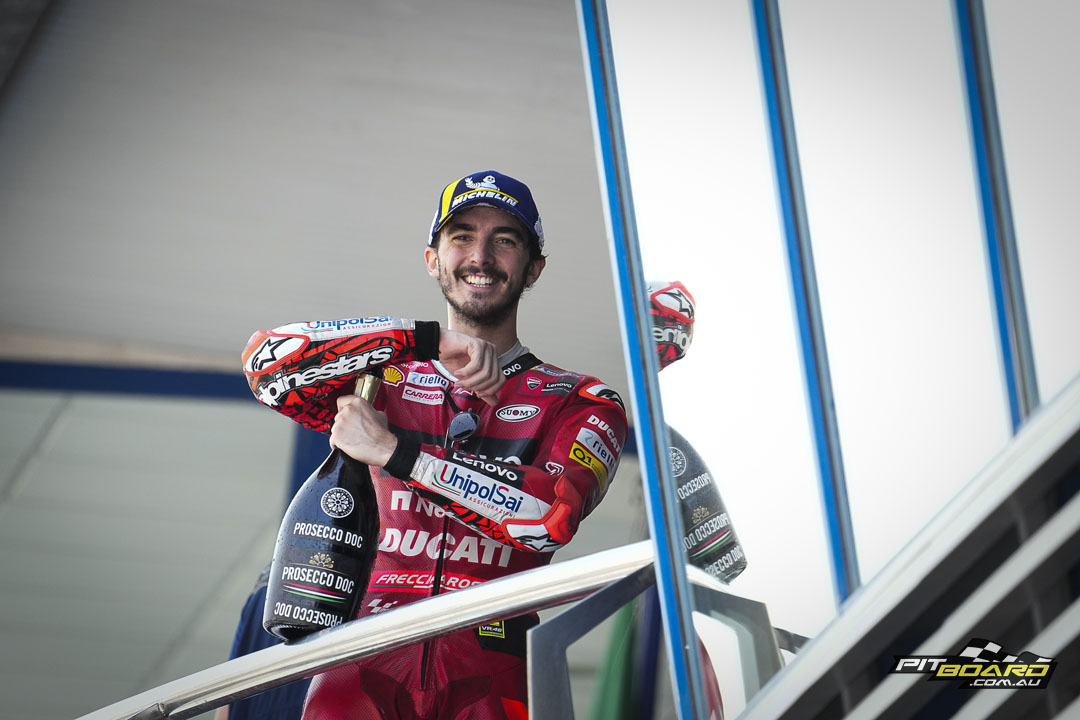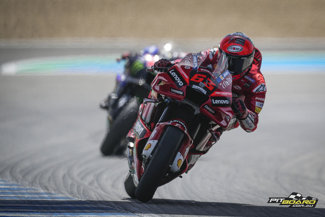 It’s the showdown that had been building all weekend: Ducati Lenovo Team’s Francesco Bagnaia vs Monster Energy Yamaha MotoGP’s Fabio Quartararo. Despite his easy win in Portimao, Quartararo couldn’t catch the Ducati this time...