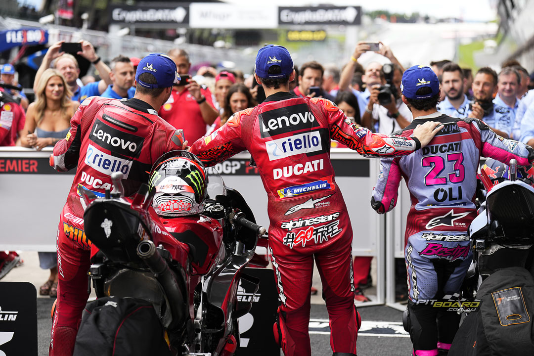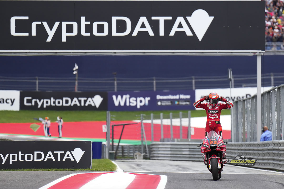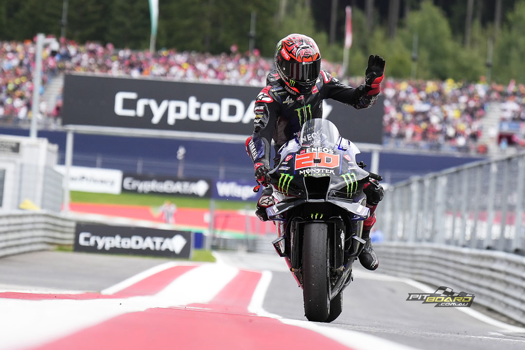 Three in a row makes perfect reading for Pecco, but Quartararo takes Yamaha’s best Spielberg finish after a stunning charge to second. Fabio looks to protect his championship lead as Bagnaia slowly chomps away at his points lead heading into the San Remo round…