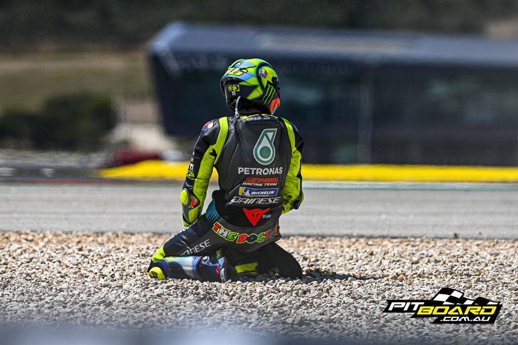 Valentino Rossi (Petronas Yamaha SRT) crashed at Turn 11, rider ok, with Pol Espargaro (Repsol Honda Team) pulling into pitlane in the early stages with a technical issue.