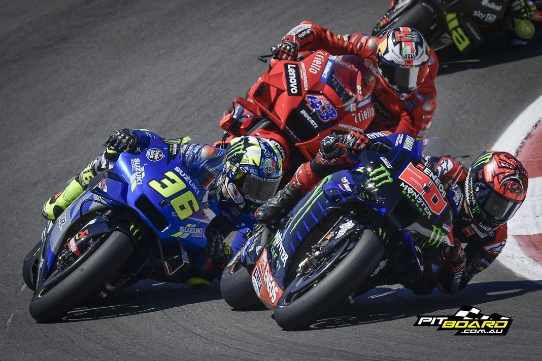 It wasn’t to be for the number 42 though as he crashed out, with Francesco Bagnaia (Ducati Lenovo Team) then carving his way through to second and just holding off third placed Joan Mir (Team Suzuki Ecstar). The returning Marc Marquez (Repsol Honda Team) battled through the pain to finish P7 after a few feisty exchanges.