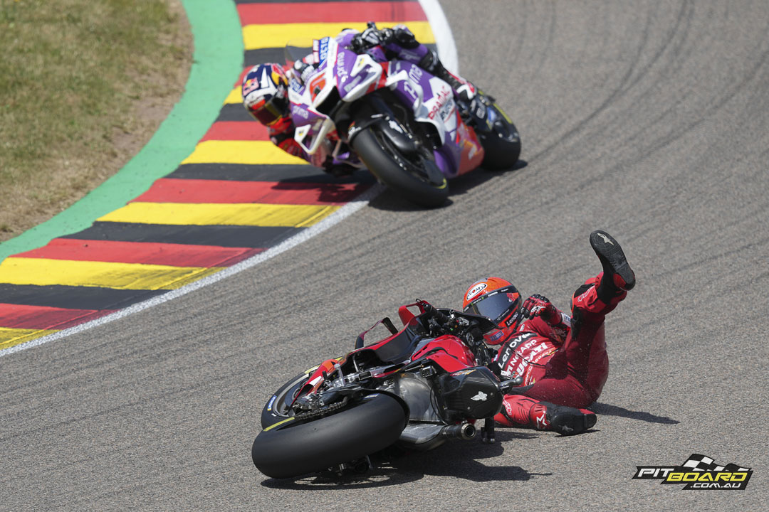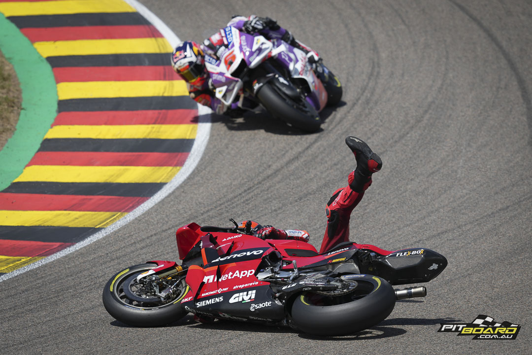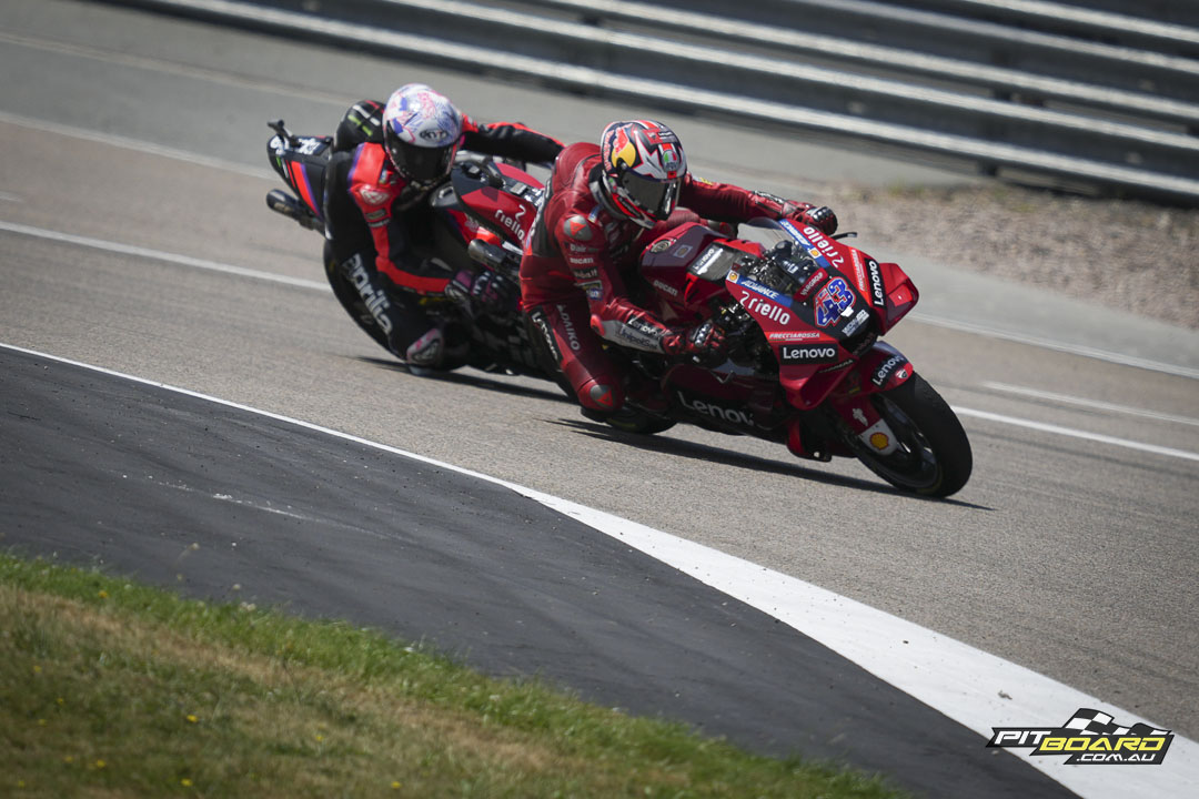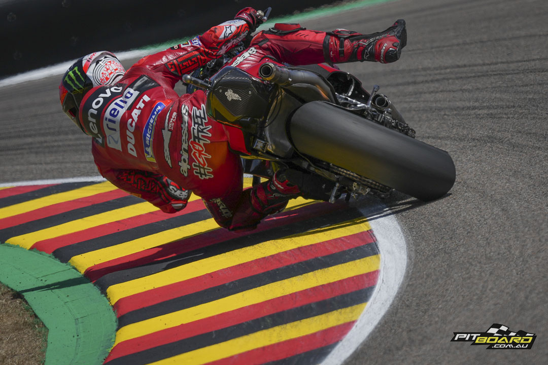 The twisty layout of the Sachsenring might not traditionally have suited the Bologna bullets, but it seems times they are a-changing as Ducati Lenovo Team had already gone one-two in FP1. Miller led the way with a 1:21.479, ahead of Bagnaia by just over a tenth.