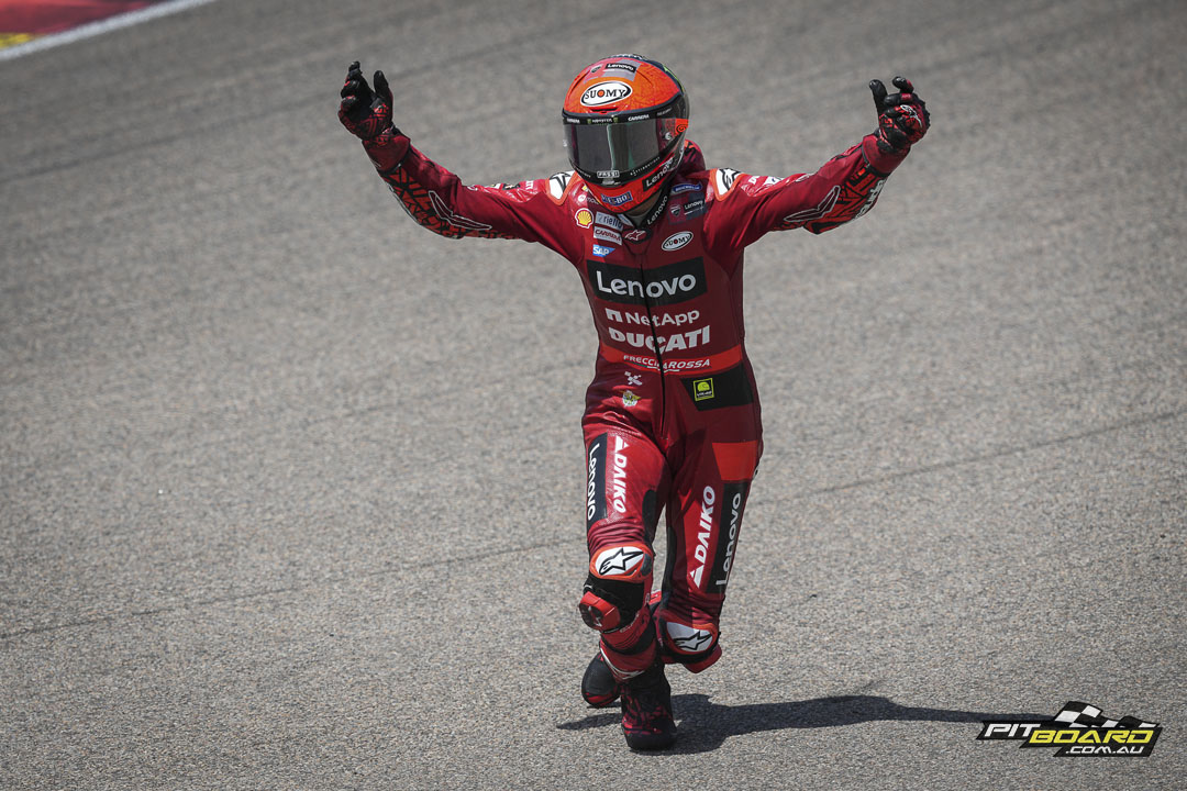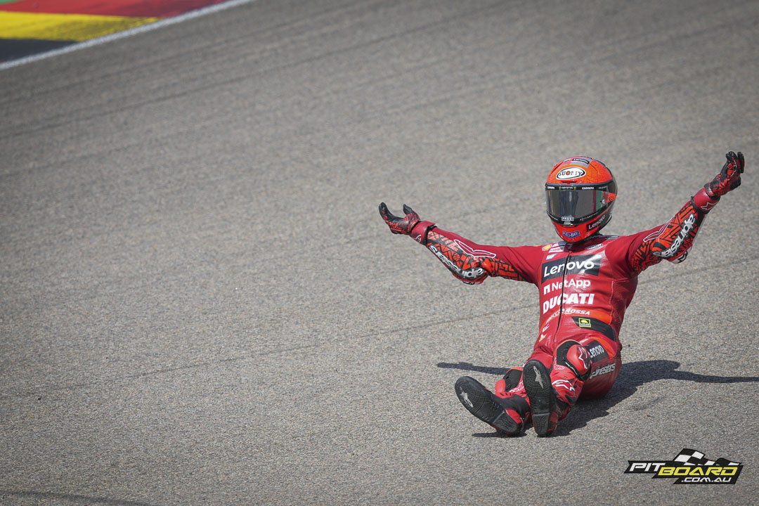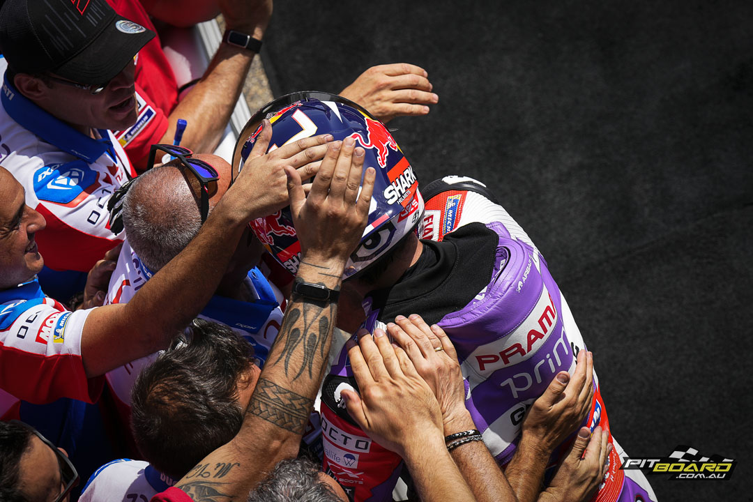 Brad Binder (Red Bull KTM factory Racing) demonstrated once again that he is the quintessential ‘Sunday man’ by riding up from 15th on the grid to seventh, BB33 getting his elbows out. The top 10 was rounded out by Di Giannantonio, Miguel Oliveira (Red Bull KTM Factory Racing), and Enea Bastianini (Gresini Racing) as the Beast recovered from as low down as P20 in the early stages.