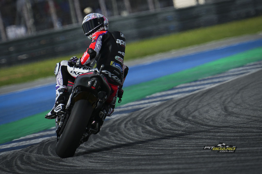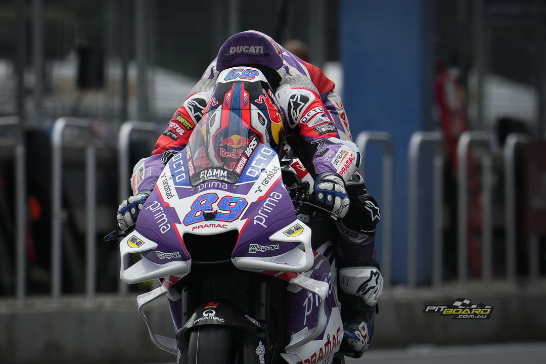 While it rained on and off during Friday, the track was well and truly dry for MotoGP FP2. That gave competitors the opportunity to work on their race pace and while Alex Rins (Team Suzuki Ecstar) was top for the session on a 1:31.088 with 10 minutes to go, there still had been no change to the combined top 10. That would change once the time attacks started, but even then, only half the 24-strong field improved on their FP1 pace. Martin was first to shift the benchmark, then Bagnaia and finally Zarco.