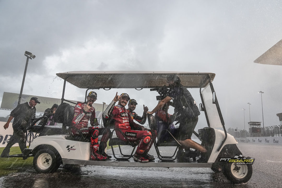 Miller wasn’t dropped, but the Australian couldn’t quite find a way back through and was forced to settle for second as Bagnaia dug deep just behind. First holding off Marc Marquez (Repsol Honda Team) and then a late-charging Johann Zarco (Prima Pramac Racing), Pecco’s first fully wet podium couldn’t have come at a better time.