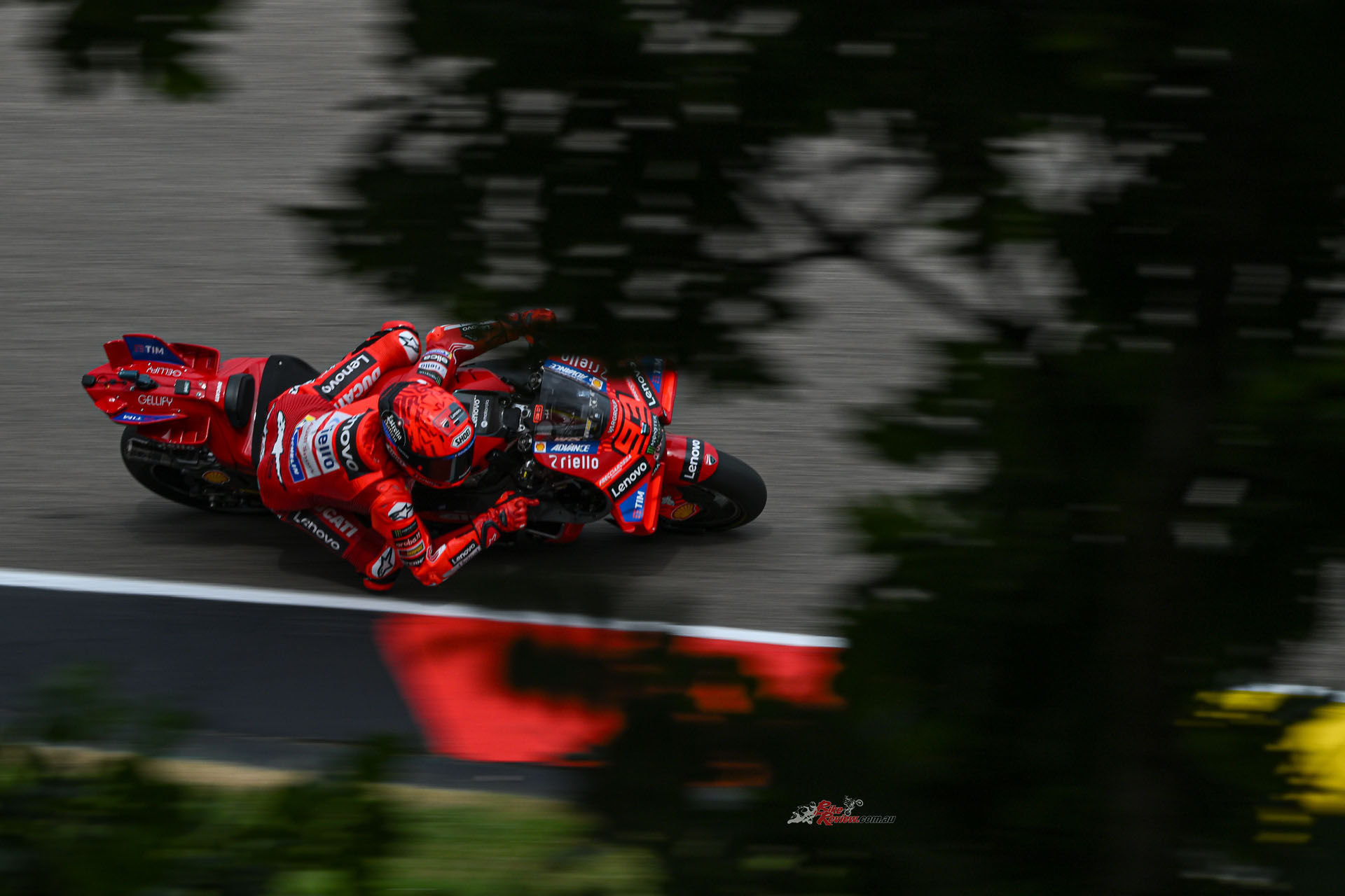 Would Marc Marquez (Ducati Lenovo Team #93) be fastest at the Sachsenring on Friday? The answer was no. That accolade went the way of Fabio Di Giannantonio (Pertamina Enduro VR46 Racing Team #49) after the Italian clocked an outstanding new all-time lap record to lead the MotoGP field by a whopping three tenths. That 1:19.071 was a belter, and the closest challenger to it was Alex Marquez (BK8 Gresini Racing MotoGP #73), despite the #73 nursing a left-hand fracture – a phenomenal effort from the Spaniard, as Marc Marquez was forced to settle for P3 in Practice.
