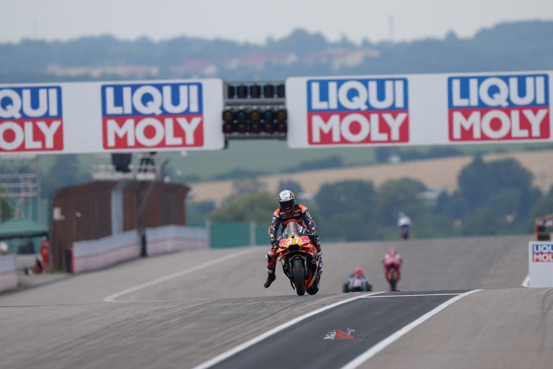 In terms of the victory and podium fight, there was nothing much to report. Marc Marquez cruised to a ninth MotoGP victory at the Sachsenring, with Alex Marquez limiting the points damage with a brilliant ride to P2 while nursing his fractured left hand, as Pecco salvaged a solid P3 after a Saturday to forget.