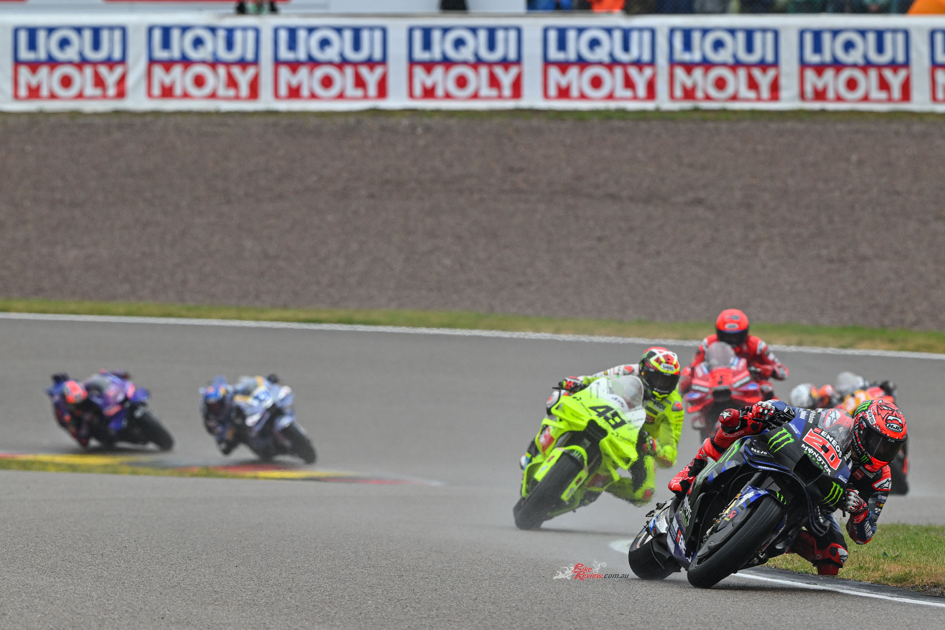 Was it ever in doubt? Well, for 14 and a half of the 15 laps, it absolutely was. However, in the end, Marc Marquez’s (Ducati Lenovo Team) final lap pass on Marco Bezzecchi (Aprilia Racing) saw the championship leader pocket another gold medal in a blistering wet weather Liqui Moly Grand Prix of Germany Tissot Sprint. And joining the Ducati and Aprilia stars on the podium was Fabio Quartararo (#20) as Monster Energy Yamaha MotoGP’s lead rider claimed a Sprint rostrum for the first time since 2023.