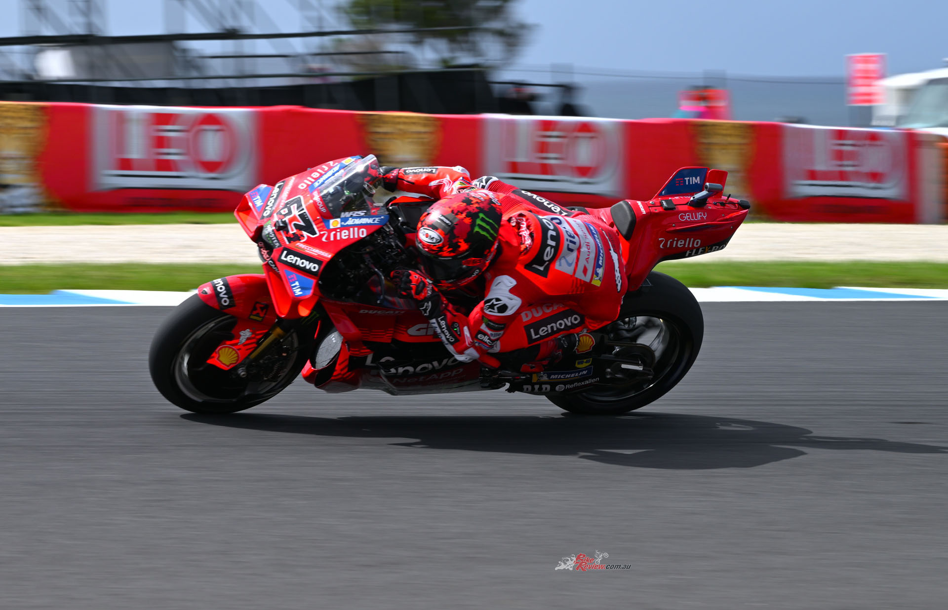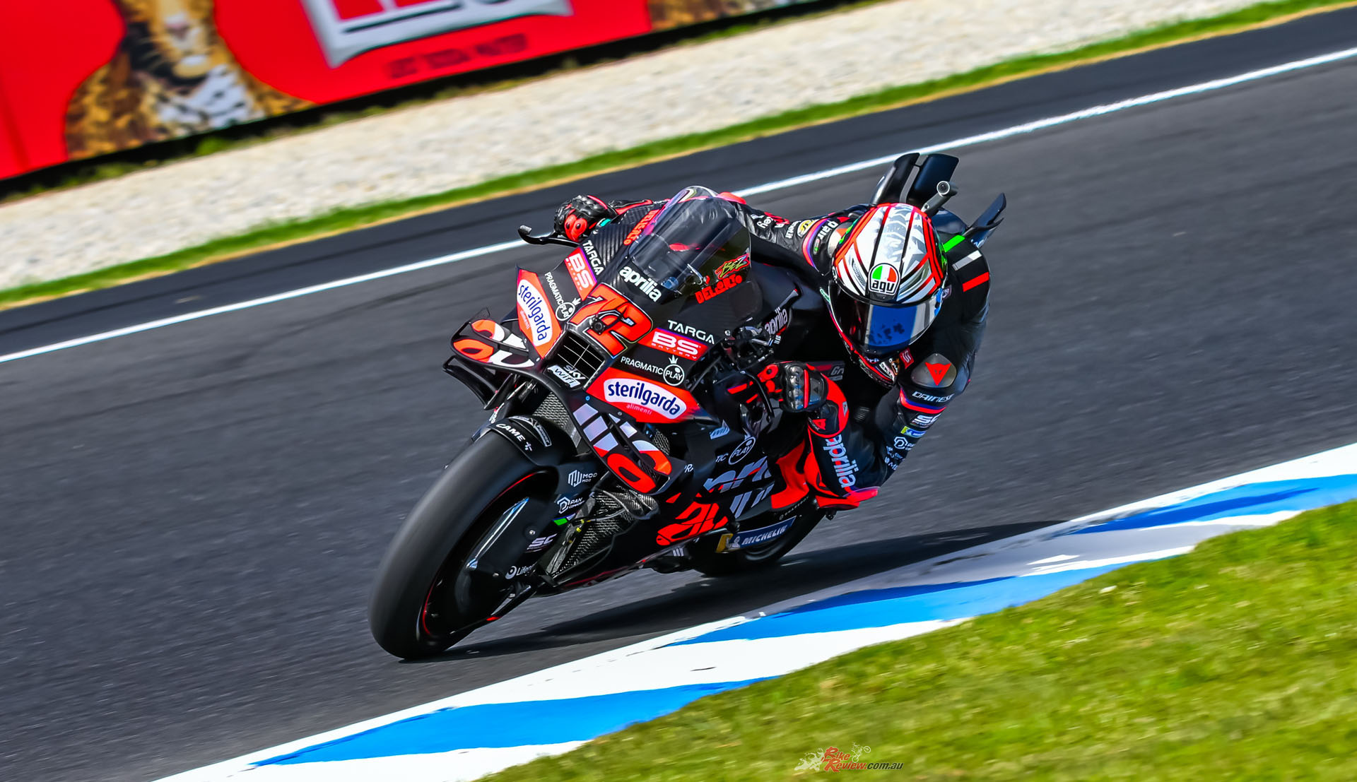 Talk about smashing the previous lap record! Marco Bezzecchi’s (Aprilia Racing) unbelievably rapid 1:26.492 saw the Italian comfortably lead the MotoGP pack heading into Saturday at the Liqui Moly Australian Motorcycle Grand Prix, and it was another Aprilia rider acting as the #72’s closest challenger. Raul Fernandez (Trackhouse MotoGP Team) improved late on to make it an RS-GP 1-2 in Practice at Phillip Island, with Fabio Di Giannantonio (Pertamina Enduro VR46 Racing Team) rounding out the top three as fellow Ducati star Fermin Aldeguer (BK8 Gresini Racing MotoGP #54), the latest winner, missed the Q2 cut.