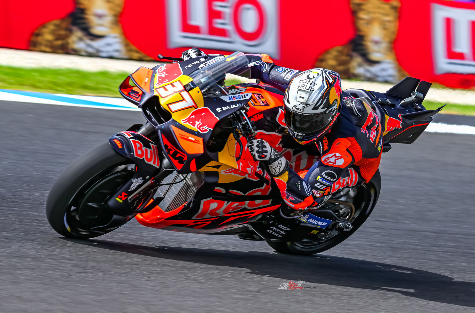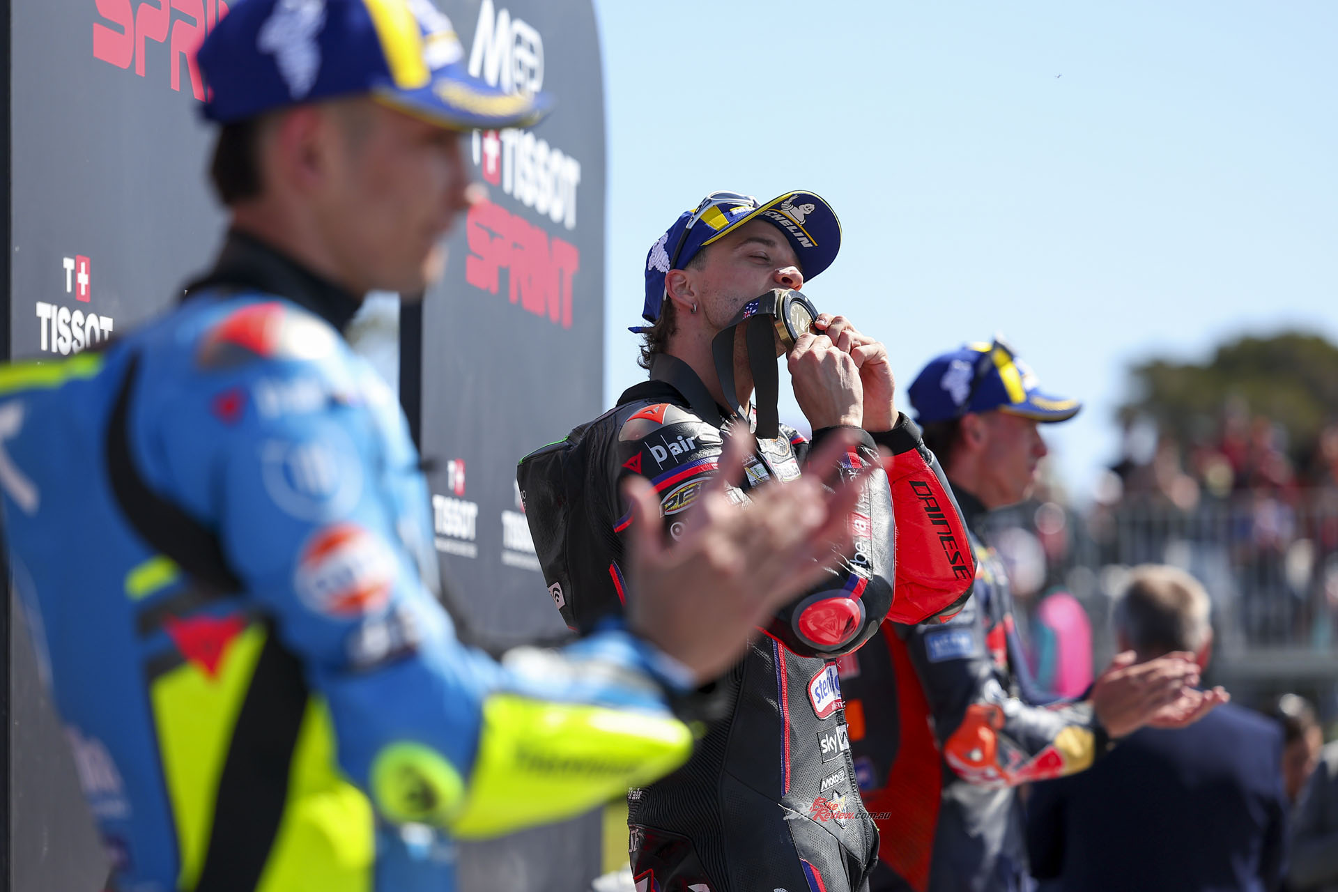 Marco Bezzecchi (Aprilia Racing) made it two Tissot Sprint victories in a row, overcoming early drama at Phillip Island to pass Raul Fernandez (Trackhouse MotoGP Team) with three laps to go and take the win. Pedro Acosta (Red Bull KTM Factory Racing #37) rounded out the podium after a tight scrap for third that went down to the wire, with P3 to P5 covered by just a tenth of a second.