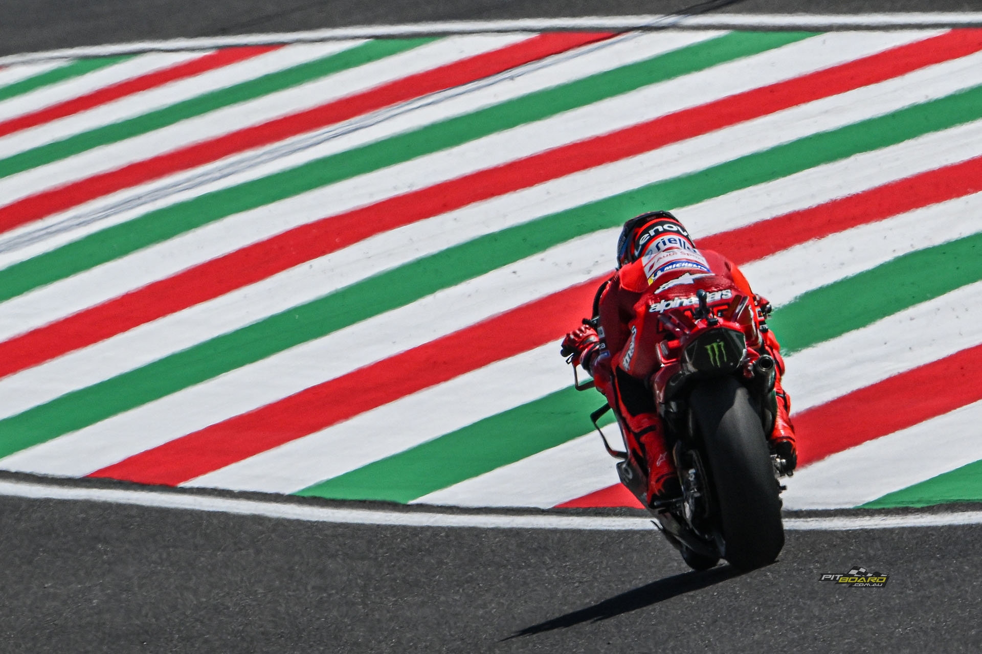As the lights went out, it was a drag race between Marc Marquez and Bagnaia down towards San Donato for the first time, initially going to the #93, before his teammate stormed back through at Turn 2 and led the opening lap of his home Grand Prix.