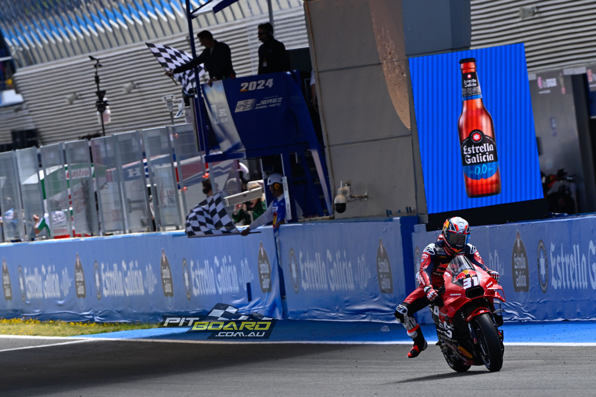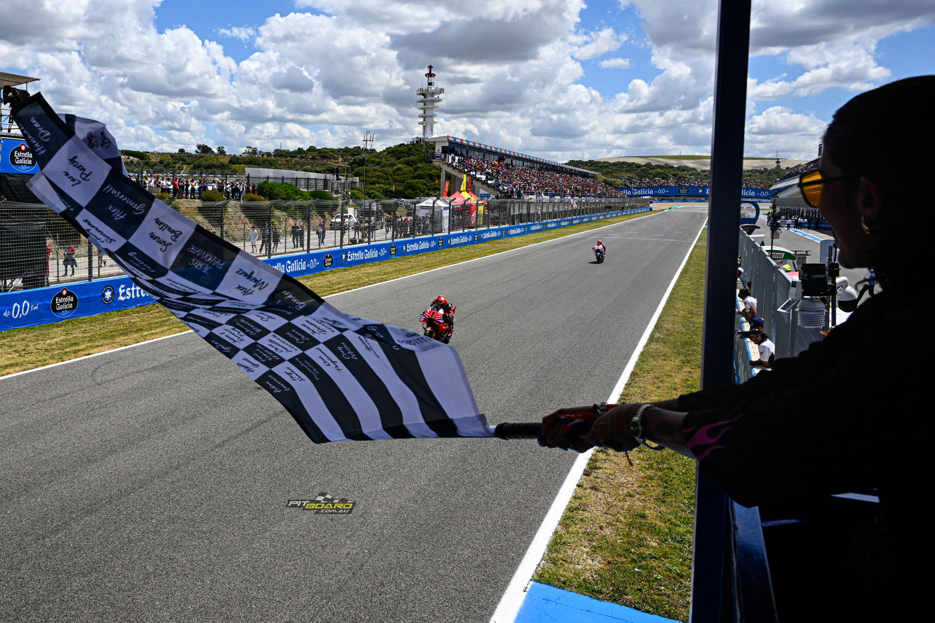Both on the absolute limit, the crowd on their feet. Two laps, four tenths, two riders, one win. The #1 pounded on. The #93 cut back into the gap, centimetre by centimetre. But the tarmac left to race at the Circuito de Jerez-Angel Nieto was disappearing in metres and kilometers, not centimetres, and Bagnaia was holding strong. The final chance for Marquez to create his fairytale was the final corner but he just wasn’t close enough. So Bagnaia completed his.