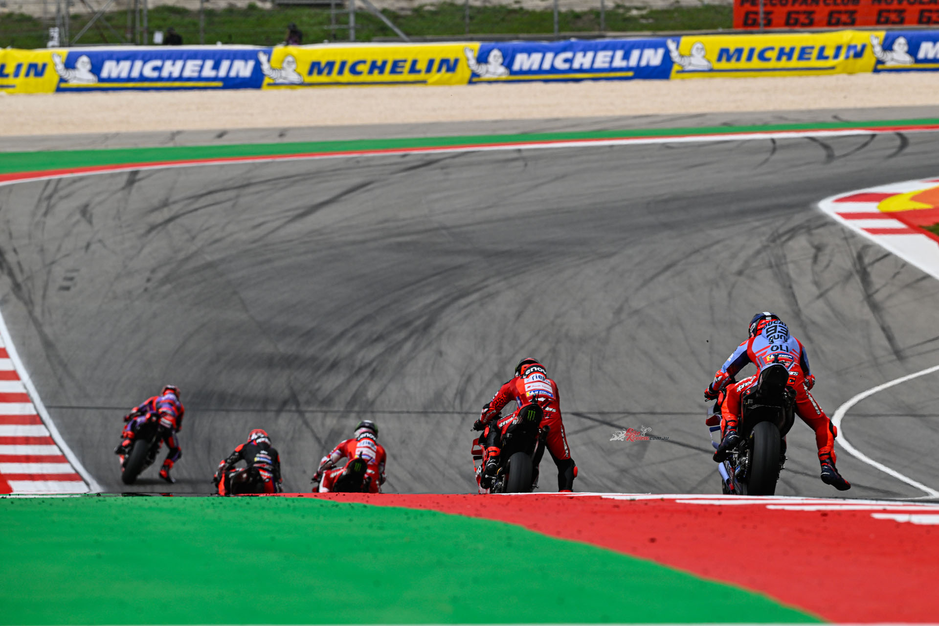 Acosta’s charge didn’t stop after he made Marc Marquez his next victim as the rookie zoned in on the reigning Champion next. He chose Turn 1 again, but the rear slipped once, then twice, and he headed wide before getting it back under control to let Pecco back through. Not long after, Acosta was able to get past Bagnaia, and that left the reigning Champion to go toe-to-toe with Marc Marquez. And then came the drama.