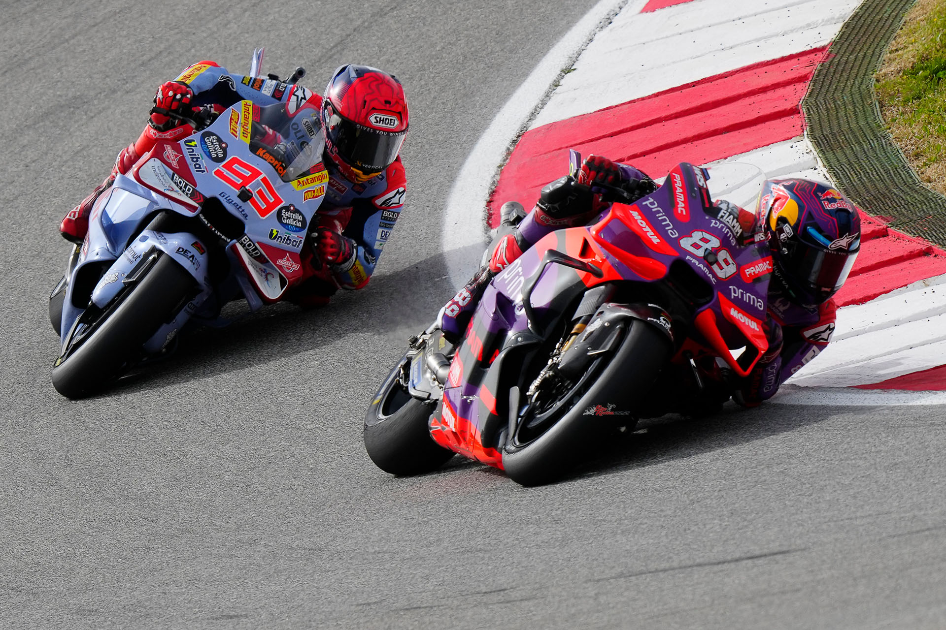 11 World Championships went toe-to-toe, and all of them slid off into the runoff. Riders okay, but in one of the most dramatic incidents for some time, Francesco Bagnaia (Ducati Lenovo Team) and Marc Marquez (Gresini Racing MotoGP™) collided with only a handful of laps to go. The FIM MotoGP™ Stewards officially deemed it a racing incident, but it’ll be a moment that will be debriefed for weeks, months, if not years to come.