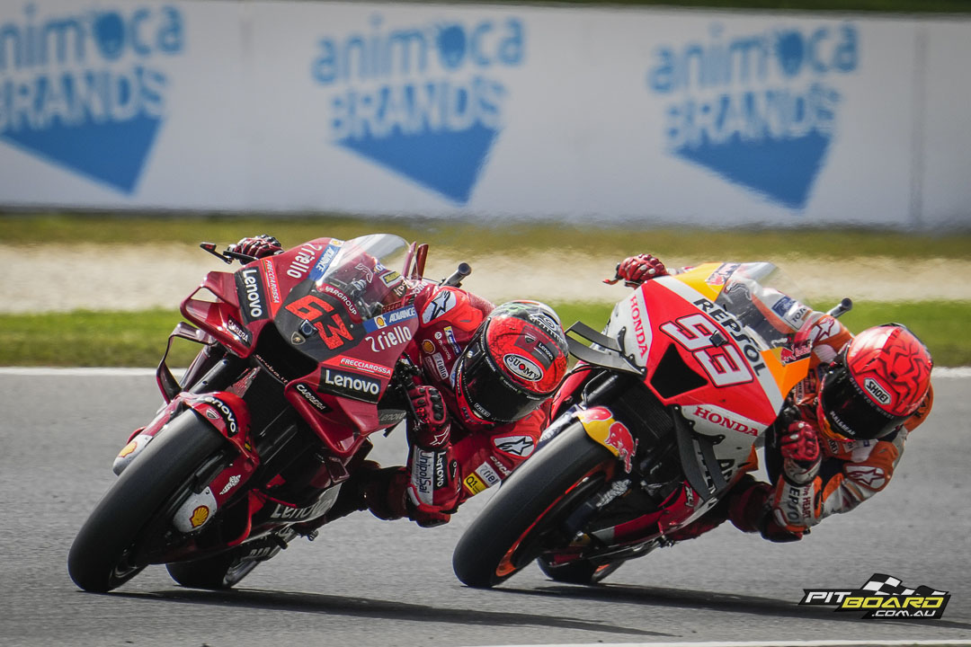 The number 93 also had a helping tow from Francesco Bagnaia (Ducati Lenovo Team) as the two lapped in tandem, with Pecco just pipped to it but still completing the front row. It was a big day at the Aus MotoGP…
