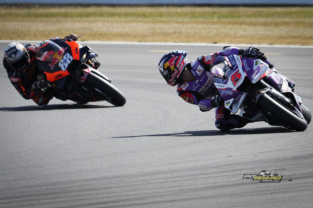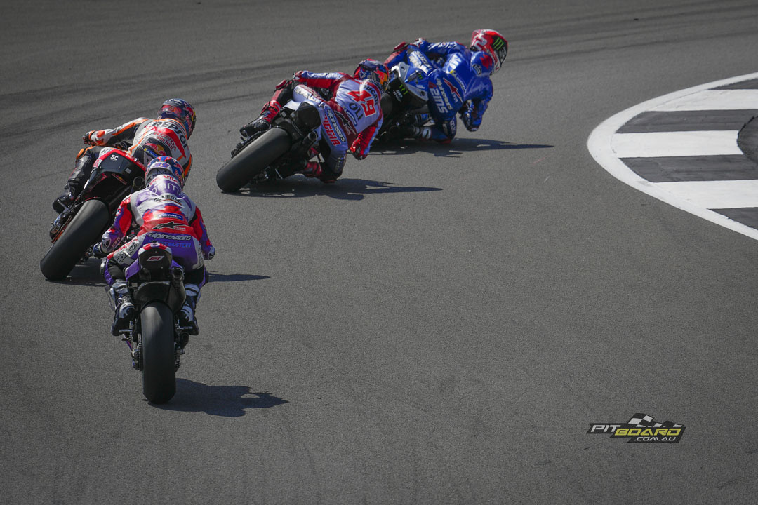 Off the line, polesitter Johann Zarco (Prima Pramac Racing) got the holeshot as he headed Quartararo early on, with the factory Ducati duo of Miller and Bagnaia taking up third and fourth respectively. Team Suzuki Ecstar’s Alex Rins was fifth on his Suzuki before he overtook Bagnaia on Lap 3 at The Loop, but both moved up on Lap 4 when Quartararo – who was sanctioned for his run-in with Aleix Espargaro at Assen – took his Long Lap Penalty at the last possible opportunity.