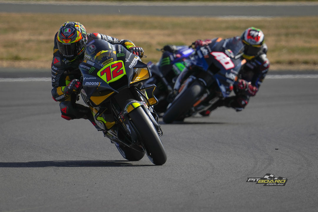 Not quite. The number 12 was wide through Stowe and Vale, ensuring Bagnaia just had the breathing space he needed to clinch the win – 0.426 clear over the line. Miller completed the podium, homing in on Viñales but not quite able to make it either.