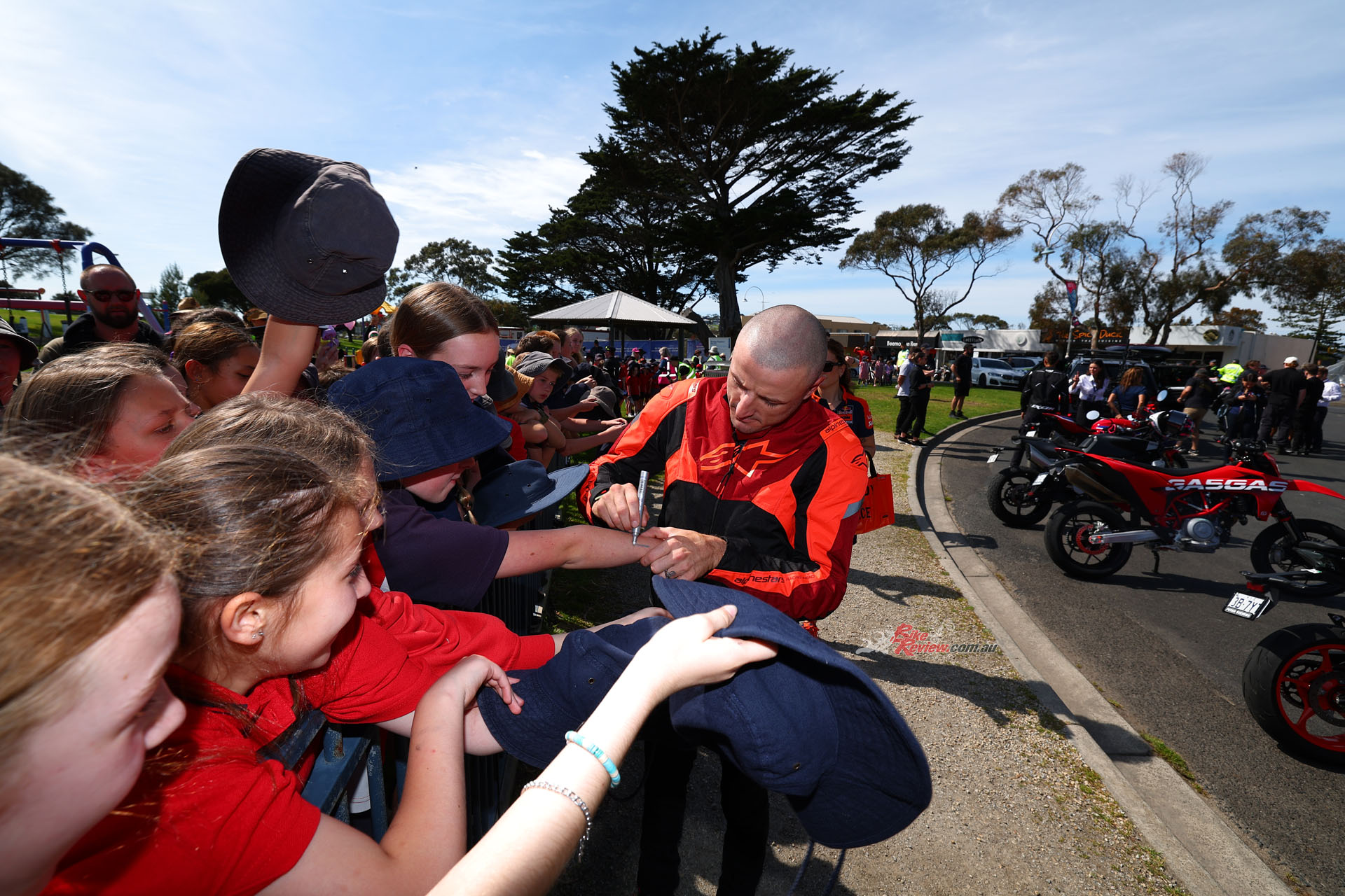 A Q&A session with the riders provided the gathered crowd with insight into the mindsets and motivations of those at the pinnacle of the sport. After the Q&A, the riders led fans for the scenic trip across the San Remo bridge to the Phillip Island Grand Prix Circuit, where they made their way around one and a half laps of the oceanside track.