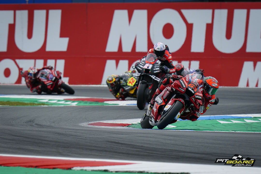 Francesco Bagnaia blasted back into serious MotoGP title contention with victory in a wild Motul TT Assen. World Championship leader Fabio Quartararo (Monster Energy Yamaha MotoGP™) clashed with his nearest rival in the points table Aleix Espargaro (Aprilia Racing), early on and crashed out.
