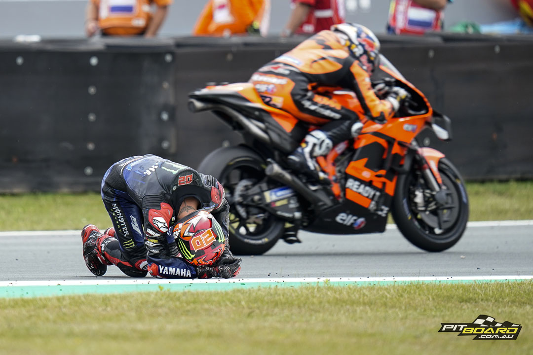 Raul Fernandez (Tech3 KTM Factory Racing) retired with arm pump, while Franco Morbidelli (Monster Energy Yamaha MotoGP™) and Darryn Binder (WithU Yamaha RNF MotoGP™ Team) made it three YZR-M1 riders who crashed out of the contest as Yamaha leave the Cathedral pointless, echoing Honda at the Sachsenring.