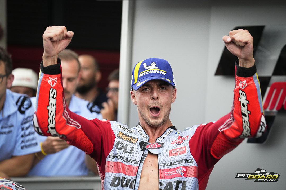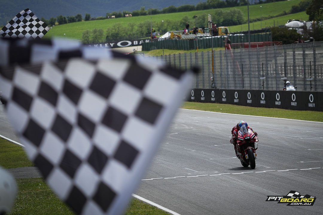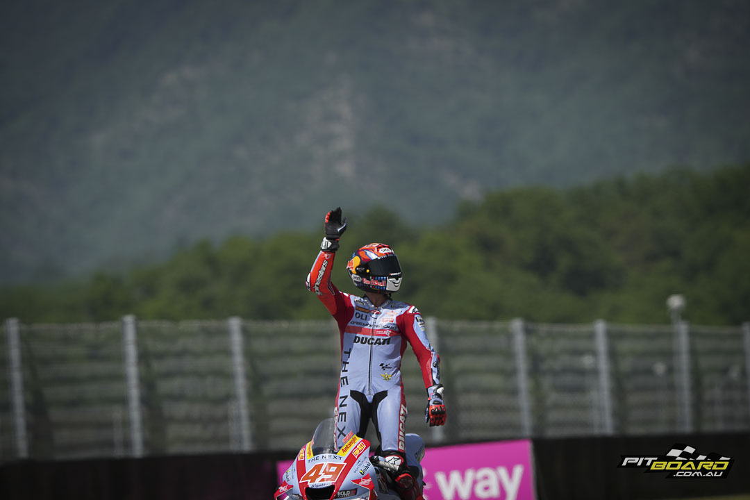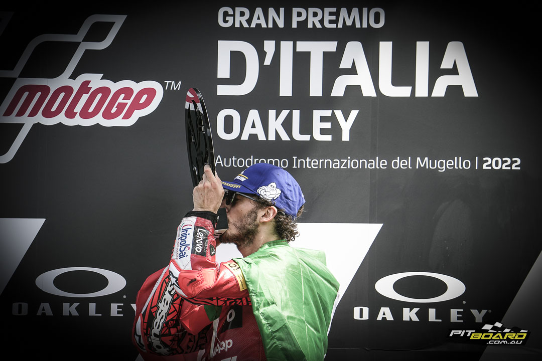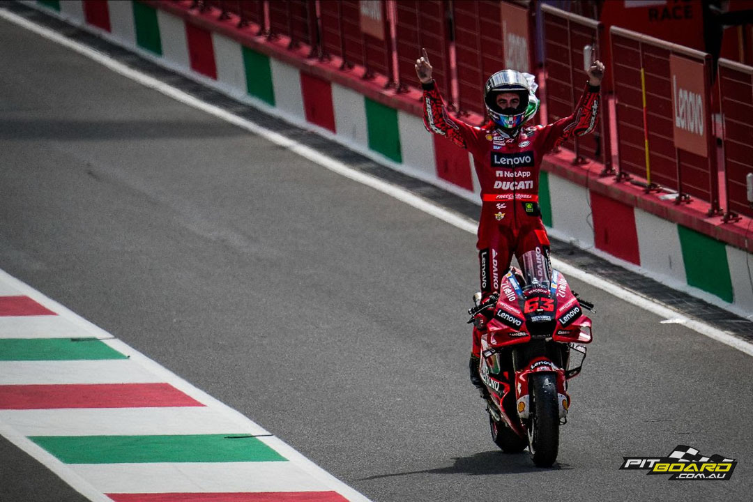 Ducati take back their turf as another 63 vs 20 chess match lights up Mugello, with Aleix Espargaro making another little piece of history in third. Pecco was stoked to take home the win after some unfamiliar names made their way to the front row of the grid on Saturday…