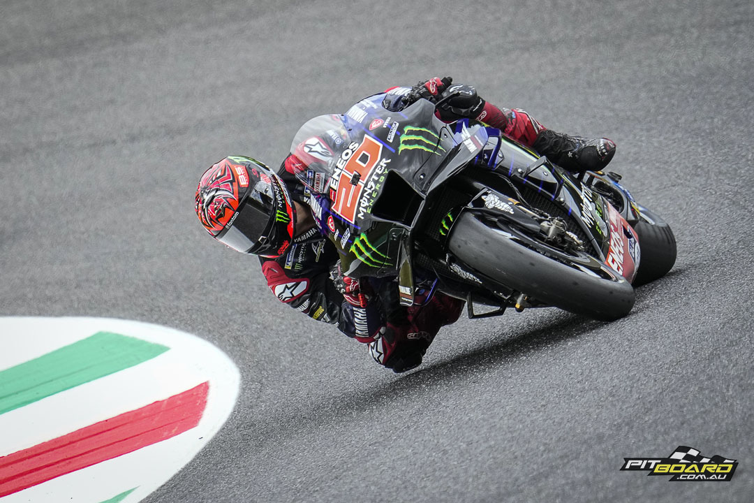 Bezzecchi overtook Di Giannantonio through Scarperia/Palagio, before Quartararo snatched fourth spot back from Aleix Espargaro on Lap 2 after the Aprilia rider had made a bold move down the hill on the opening lap. Quartararo was third when he slipped by Di Giannantonio at Scarperia/Palagio on Lap 2, but he had a serious challenge on his hands to try and keep the Ducatis at bay given the power they had on tap up the main straight.