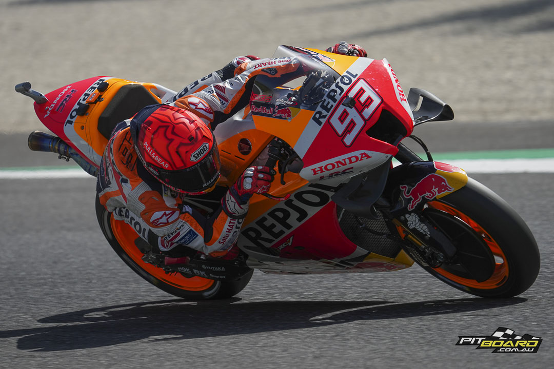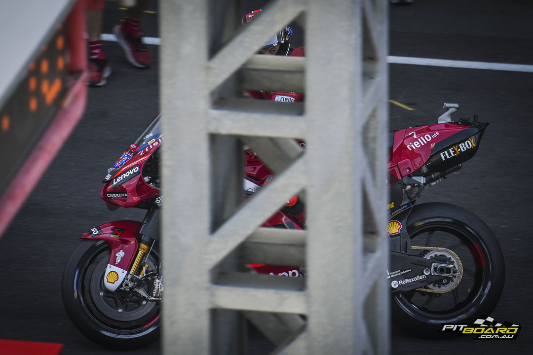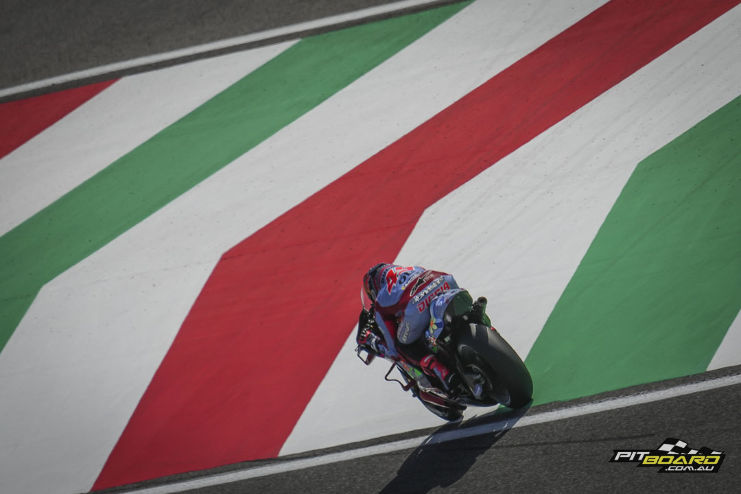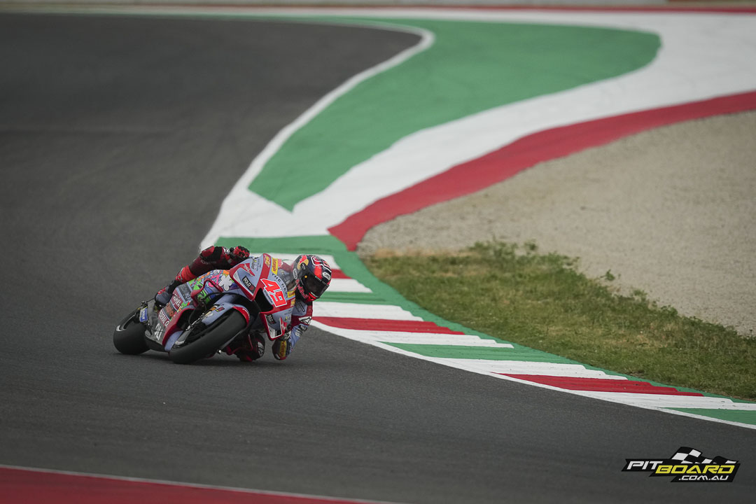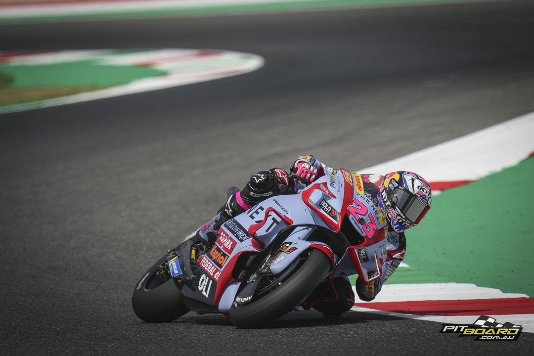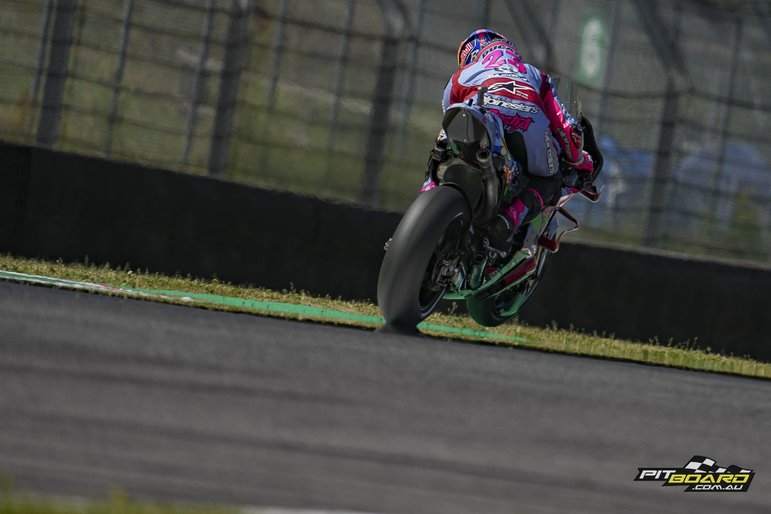 After a red flag interruption for a Marc Marquez (Repsol Honda Team) crash, rider ok, Di Giannantonio then kicked things off with a 1:49.124 before moving the marker to a 1:47.163 and then a 1:46.607 on his following laps. The Gresini rider continued to prove the pacesetter until Prima Pramac’s Johann Zarco put in a 1:46.875, but that time would not stack up as the pace continued to hot up.