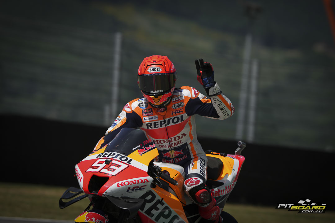 Aleix Espargaro (Aprilia Racing) came through into third for his fourth podium in a row, giving Aprilia some home turf glory and becoming only the third rider on the grid, along with Marc Marquez (Repsol Honda Team) and Andrea Dovizioso (WithU Yamaha RNF MotoGP™), to have taken four or more premier class podiums in a row.