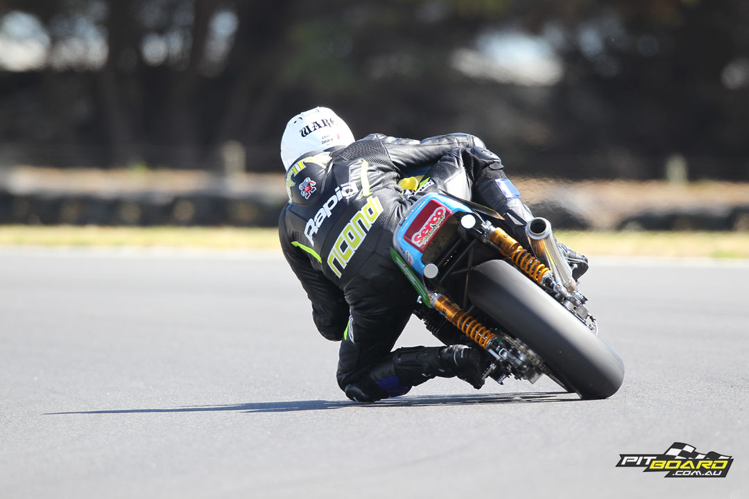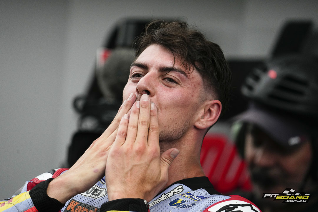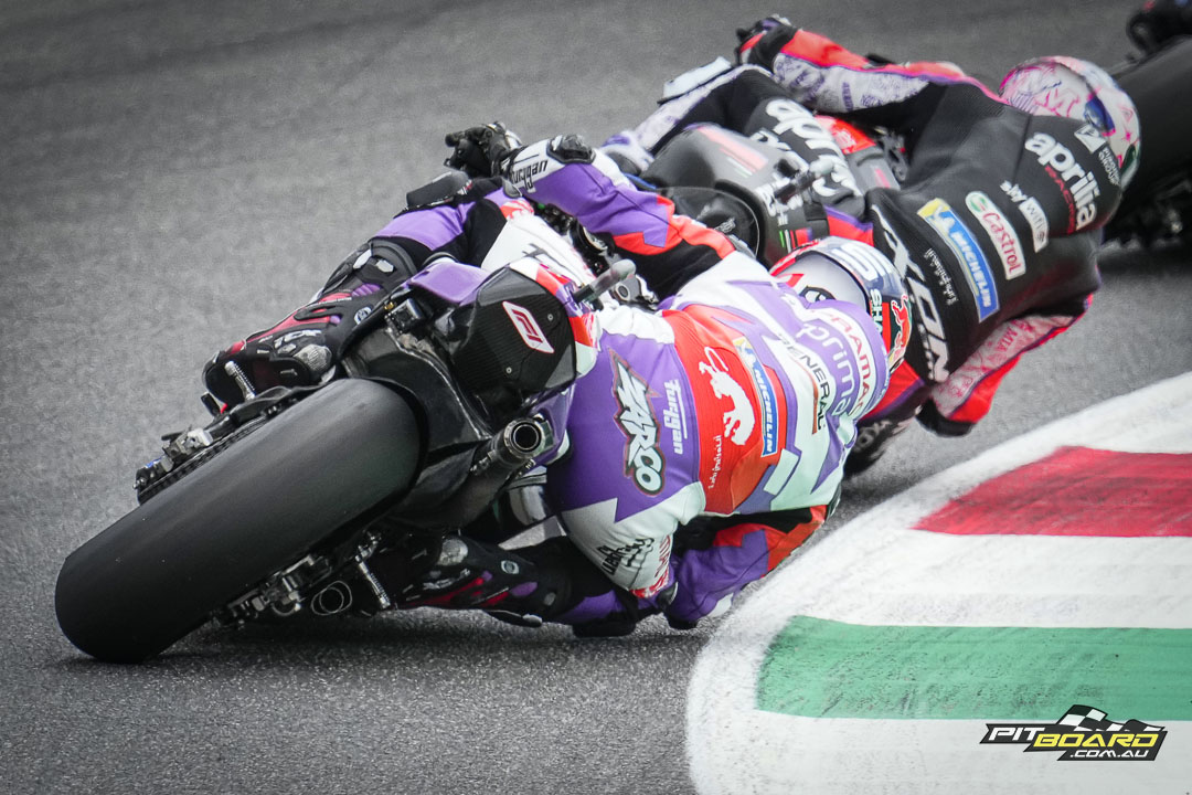 Acosta rode a composed race, his only real blemish being when he ran wide exiting Arrabbiata 2 on Lap 3 and got loose on the kerb. That moment allowed Canet back past, but he held the lead only until #51 slipstreamed back in front at the start of Lap 4. They were still first and second, having pulled around a second clear of the chasing pack, when disaster struck for Canet on Lap 13. He tucked the front going through Bucine and went sliding into the gravel trap, marking the end of his afternoon but rider ok.