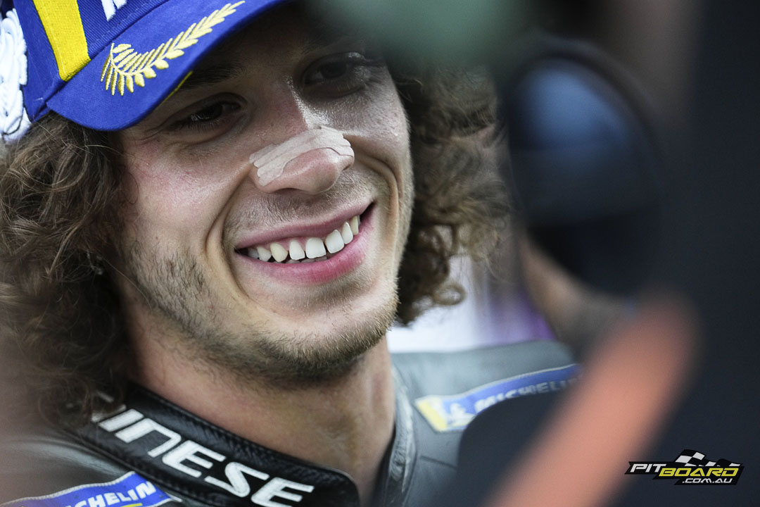Aleix Espargaro, meanwhile, finished just under two seconds further back, while Zarco passed Bezzechi on the final lap to claim fourth. Marini made it VR46 bikes fifth and sixth, while Brad Binder (Red Bull KTM Factory Racing) proved once again that he is the ‘Sunday man’ by climbing from 16th on the grid to seventh all-told, and only a couple of tenths off the VR46 battle. Rounding out the top 10 were Takaaki Nakagami (LCR Honda Idemitsu), Miguel Oliveira (Red Bull KTM Factory Racing), and – in his last race before surgery on his right arm – Marc Marquez (Repsol Honda Team).