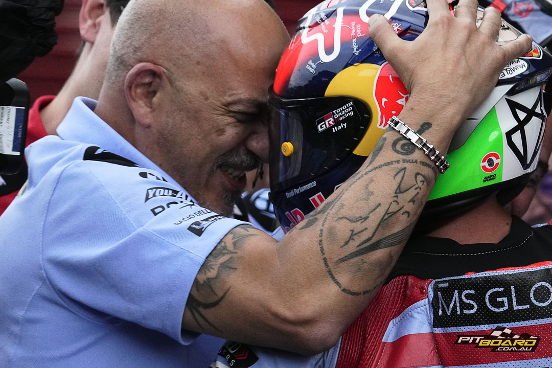 While that was elbows out, Quartararo was starting to make inroads on Bagnaia’s margin. ‘El Diablo’ brought the gap back under a second with around half a dozen laps to go and was able to keep it there, but then the Ducati rider was able to respond. It was back out to 1.1 with a lap to go, and by the time he crossed the line for an emotional win, it was just over half a second. And those 25 points put Pecco fourth, 41 points off Quartararo.