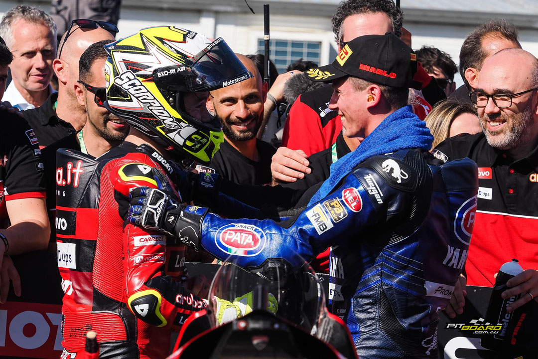 Behind the two Ducati riders, Andrea Locatelli (Pata Yamaha Prometeon WorldSBK) claimed his first podium of the season with third place.