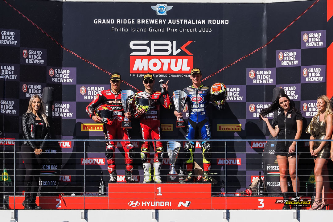 Race Two Podium at Phillip Island, Round One 2023… Bautista scores the hat-trick for Ducati!