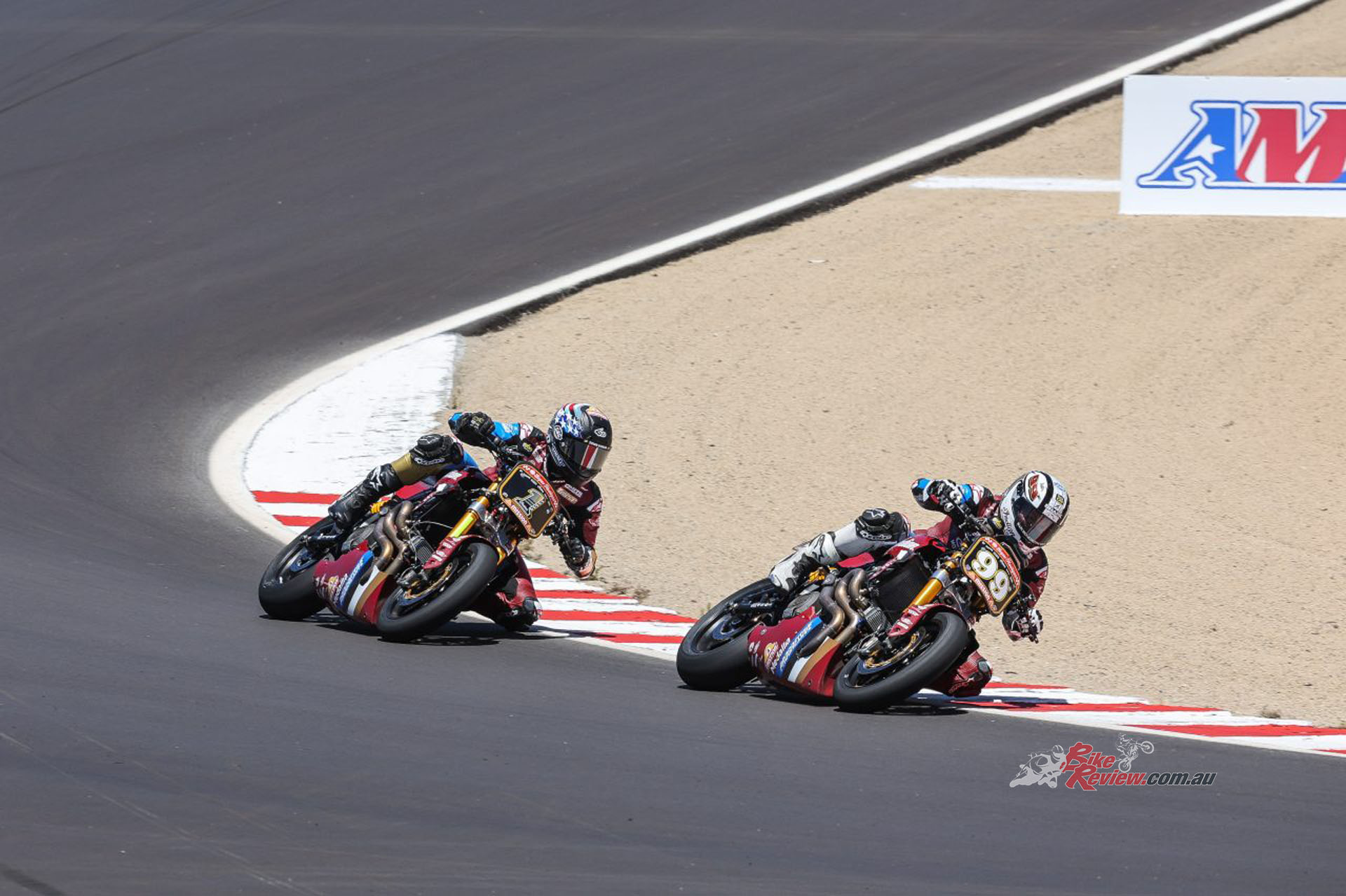 Road racing in the USA at National level is currently enjoying a purple patch, with MotoAmerica’s stacked grids for a wide variety of contrasting classes delivering nail-bitingly close, handlebar-clashing, all-action competition – even between rival teammates! The result has been a sharp spike in racetrack attendance by paying spectators, as well as in logins by online race fans – and especially so now that the century-old warfare between Indian and Harley on dirt ovals has finally been transposed to what in America is still termed by many such followers as ‘pavement racing’.