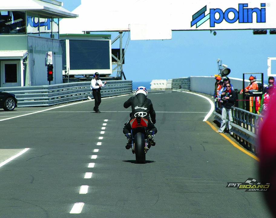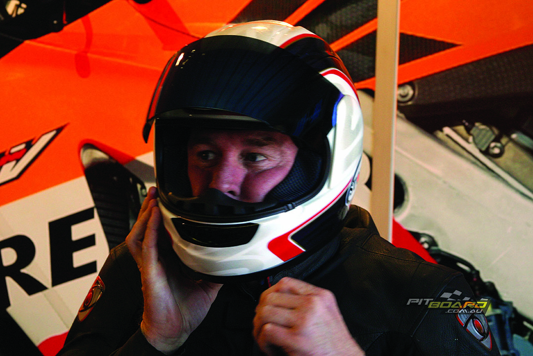 “The build-up to the ride was amazing. It was an experience I’ll never forget. As I was gearing up in the change room I just couldn’t believe it’d been 13 years. The routine was the same. Leathers on. Then boots. Stretching. Walking into the garage and getting the rundown from Erv. Earplugs in as the bike is being warmed up. Brap. Brap. Brap… “Checking the monitor, cleaning my visor. Checking my helmet strap and then, finally, getting the nod from Erv. You’re up!”